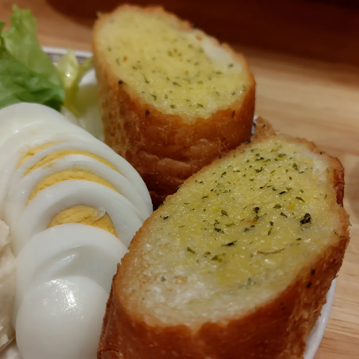 ガーリックバゲットをミネストローネにひたぱん、食べ方いろいろ、美味しそうですね〜😋🎵🎵