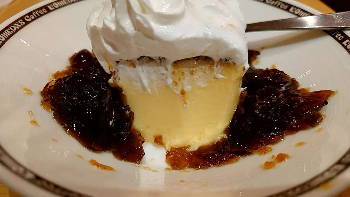 う~ん皆さんのプリン画像でのホイップ巻きが美しいので...まあはみ出してる分減ってはいないので良しとします🙂