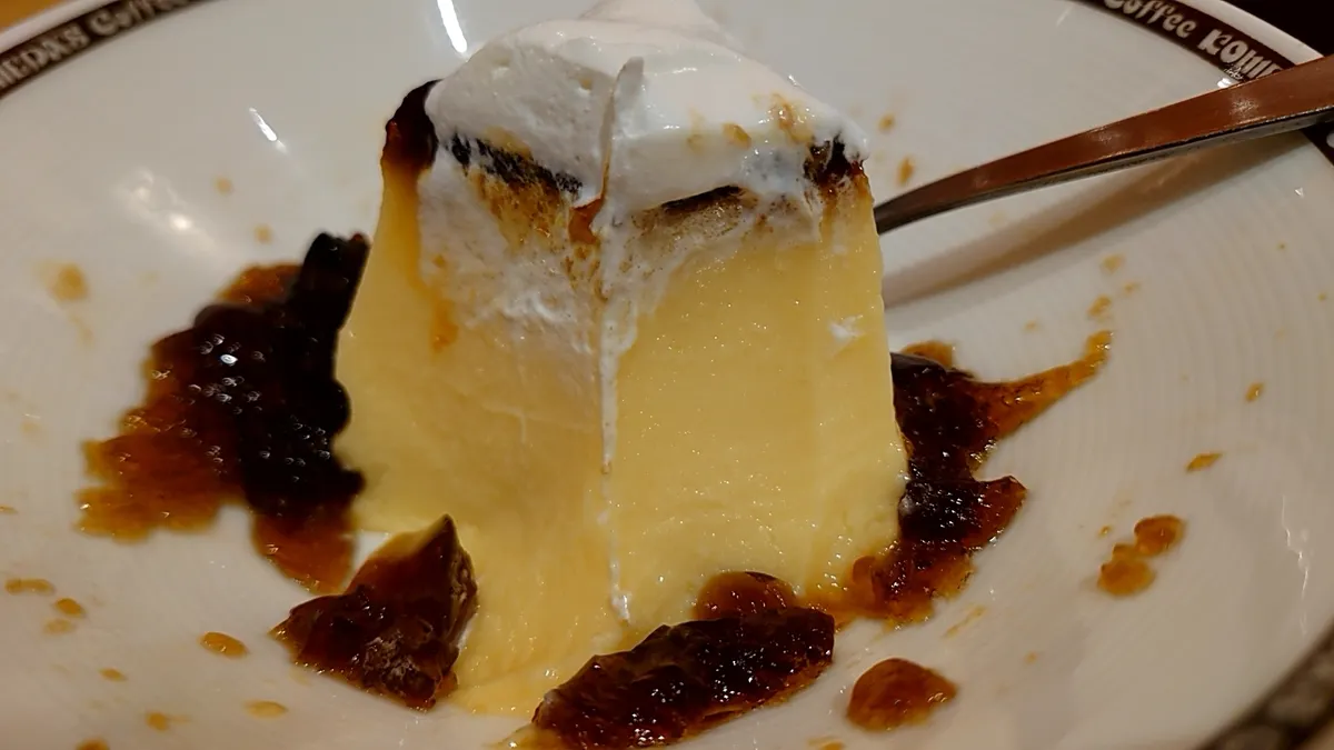 プリンは豆腐同様硬め派か柔らか目派が別れるかと思いますが自分は硬め派なのでこの硬さはベスト👍”ですね😺