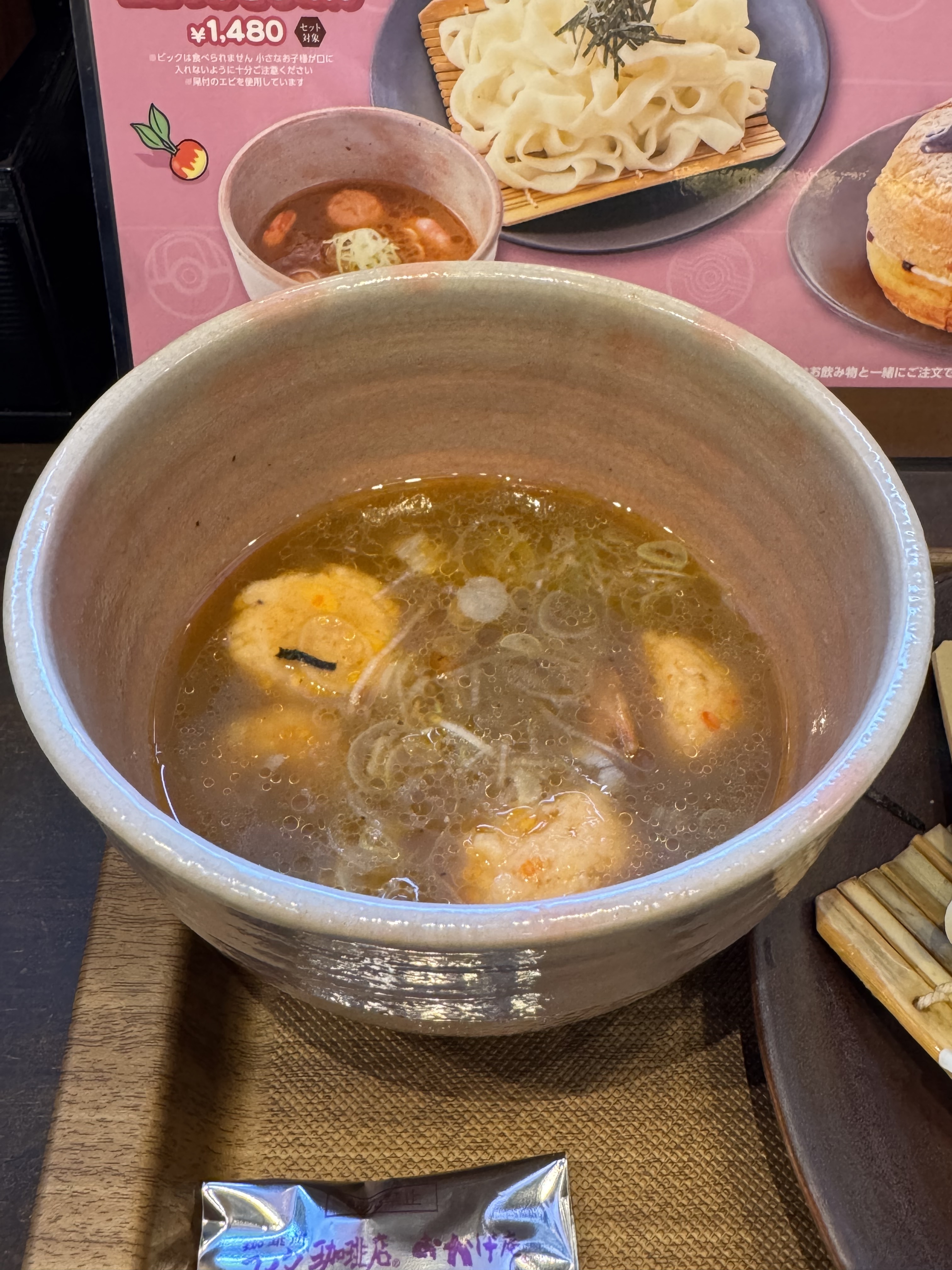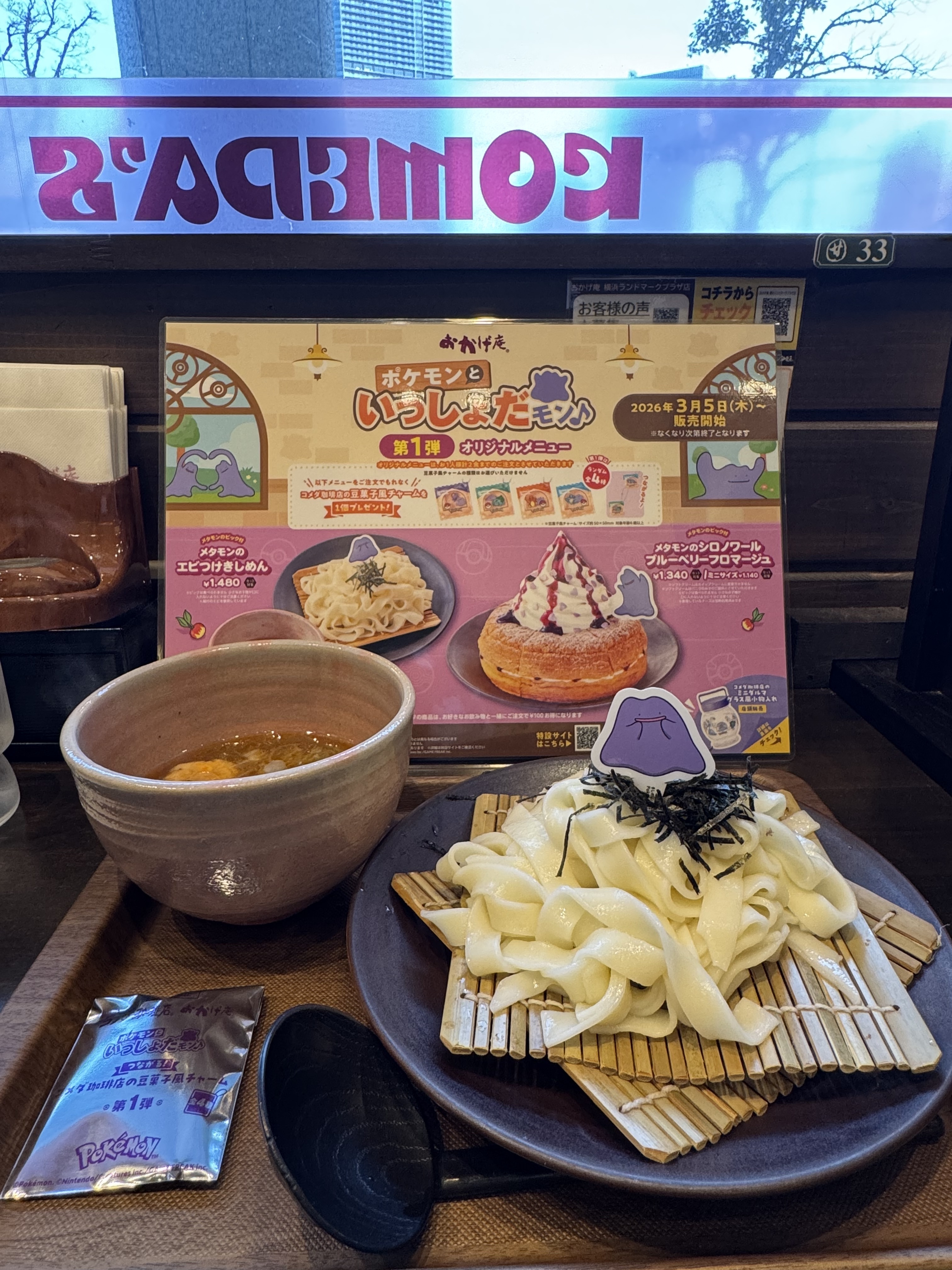 待ち時間は長かったけれど、念願のメタモンのエビつけきしめんをいただきました😋。