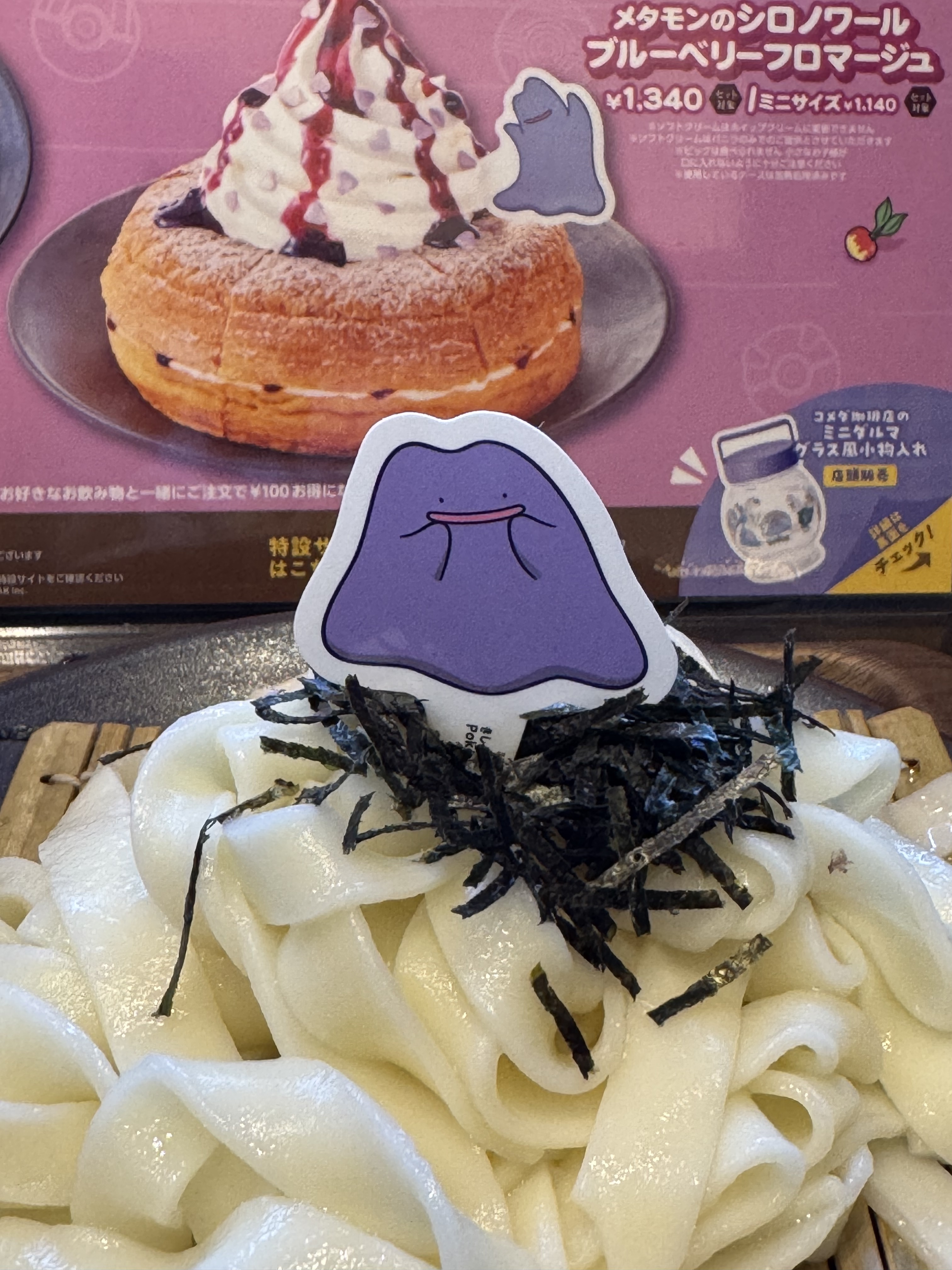 きしめんの上には磯の香りの刻み海苔とメタモンがかわいい〜💜✨