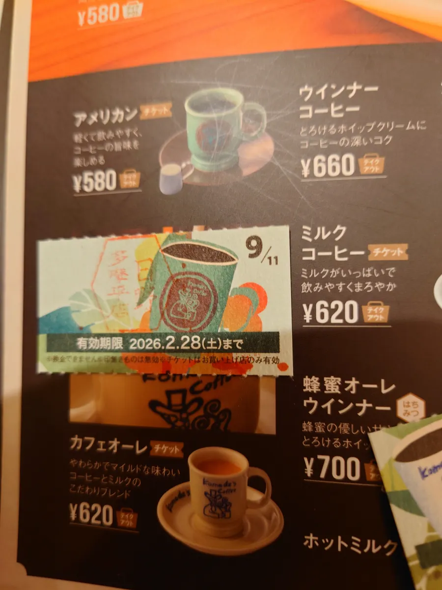 お供のドリンクは、チケットの絵通りアメリカンにしました。