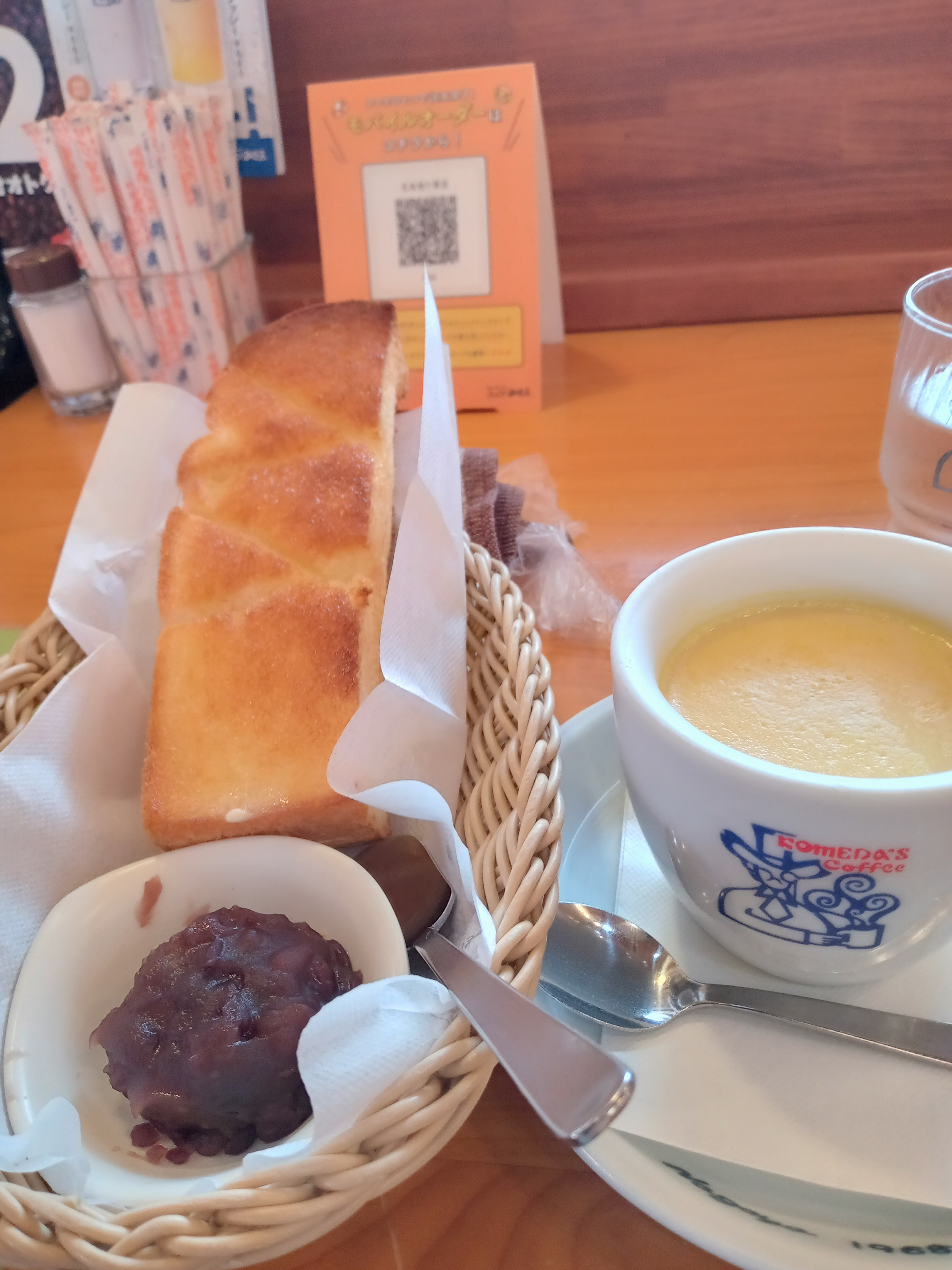 少し涼しくなってきましたのでコーンスープでCモーニングのトーストは少しよく焼きでお願いしました