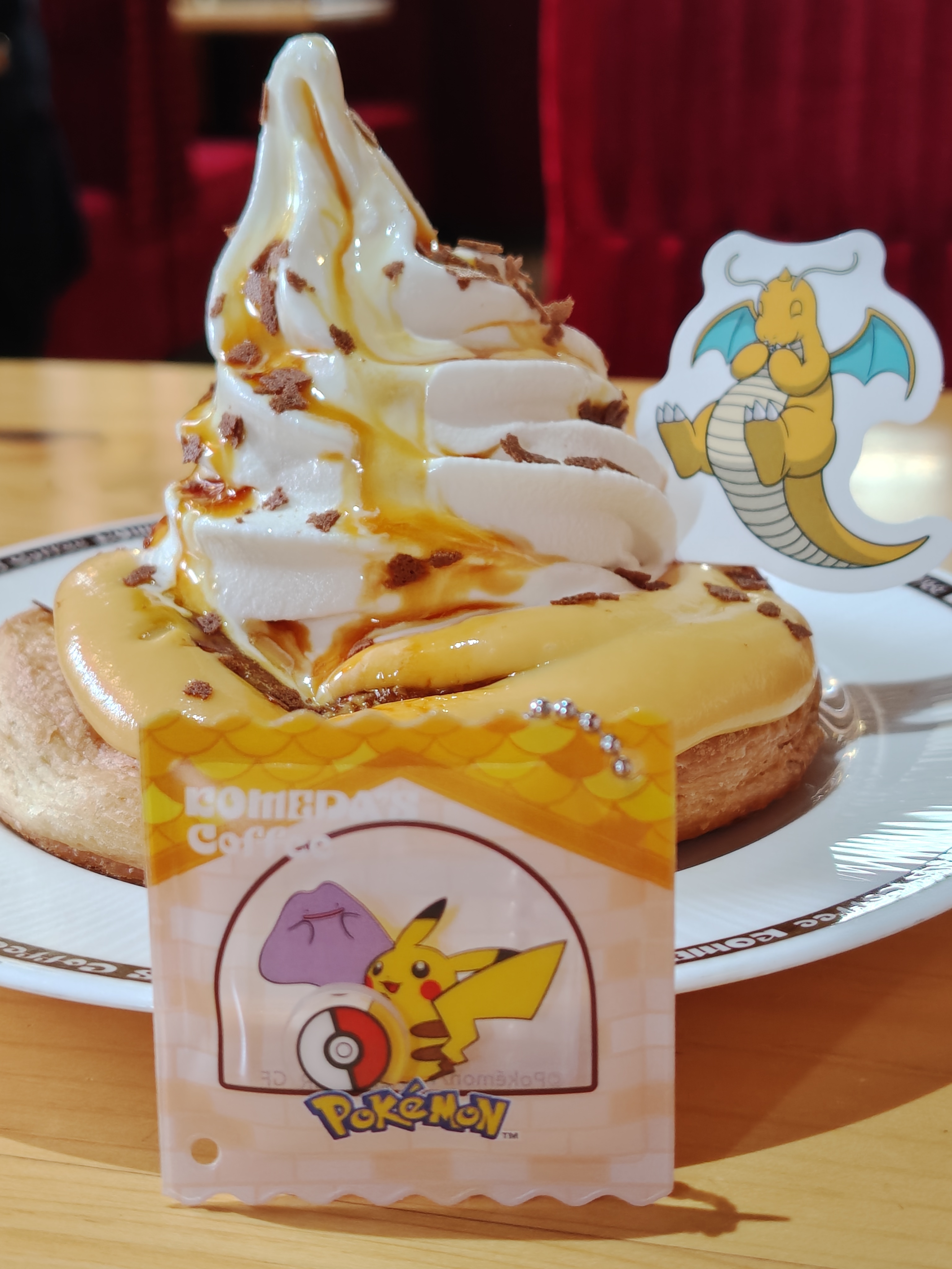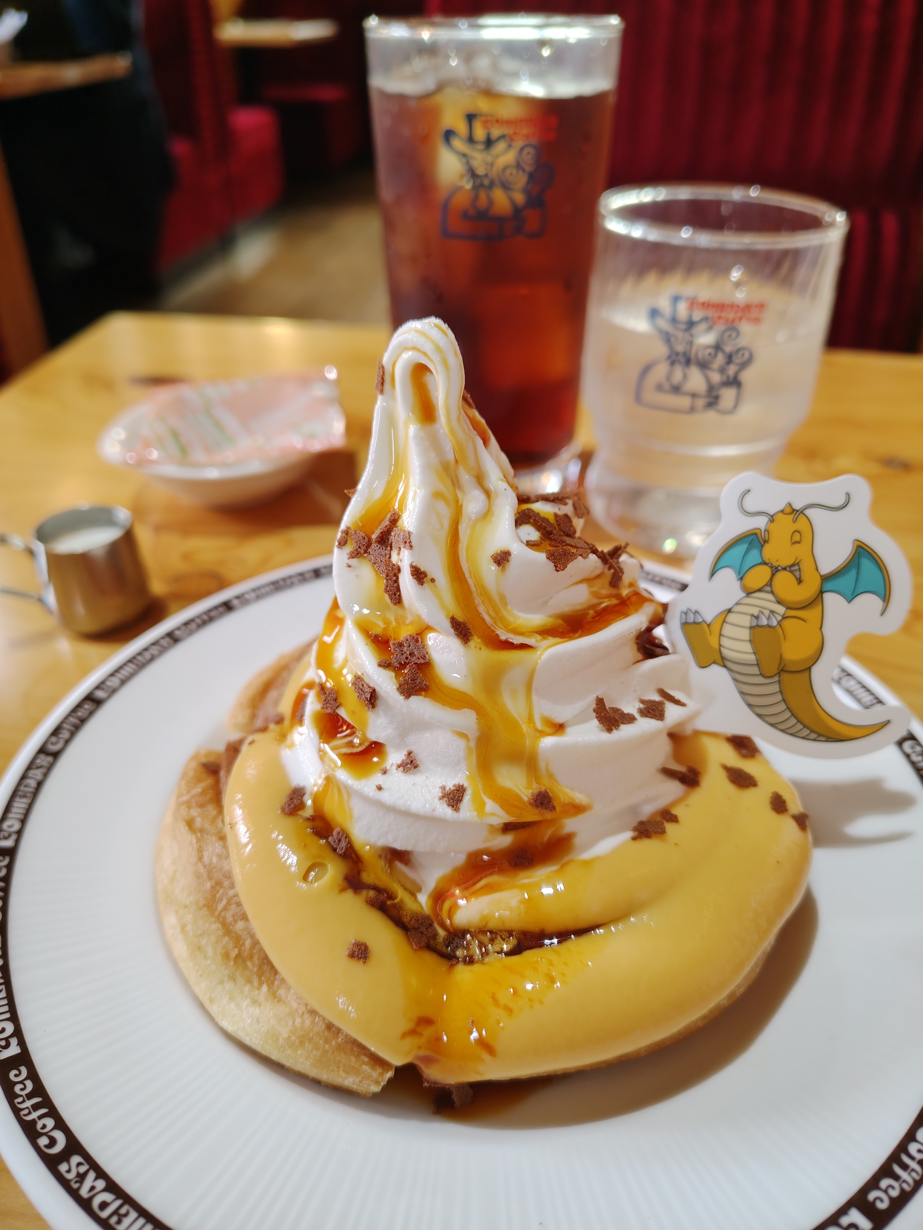 日置橋店(名古屋市)のモバイルオーダーのメニュー画面にはポケモンコラボが載っていませんが ドリンクだけモバイルオーダーで注文してから口頭でカイリューのシロノワールを注文したら ちゃんとデザートセットで100円引きになっていました🤓