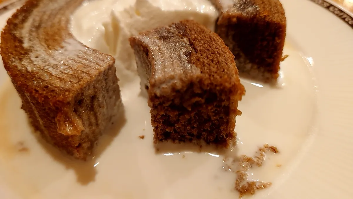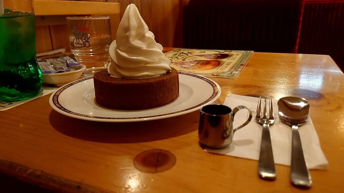 ココアバウムクーヘンとソフトクリームと蜂蜜、美味しそうです😋