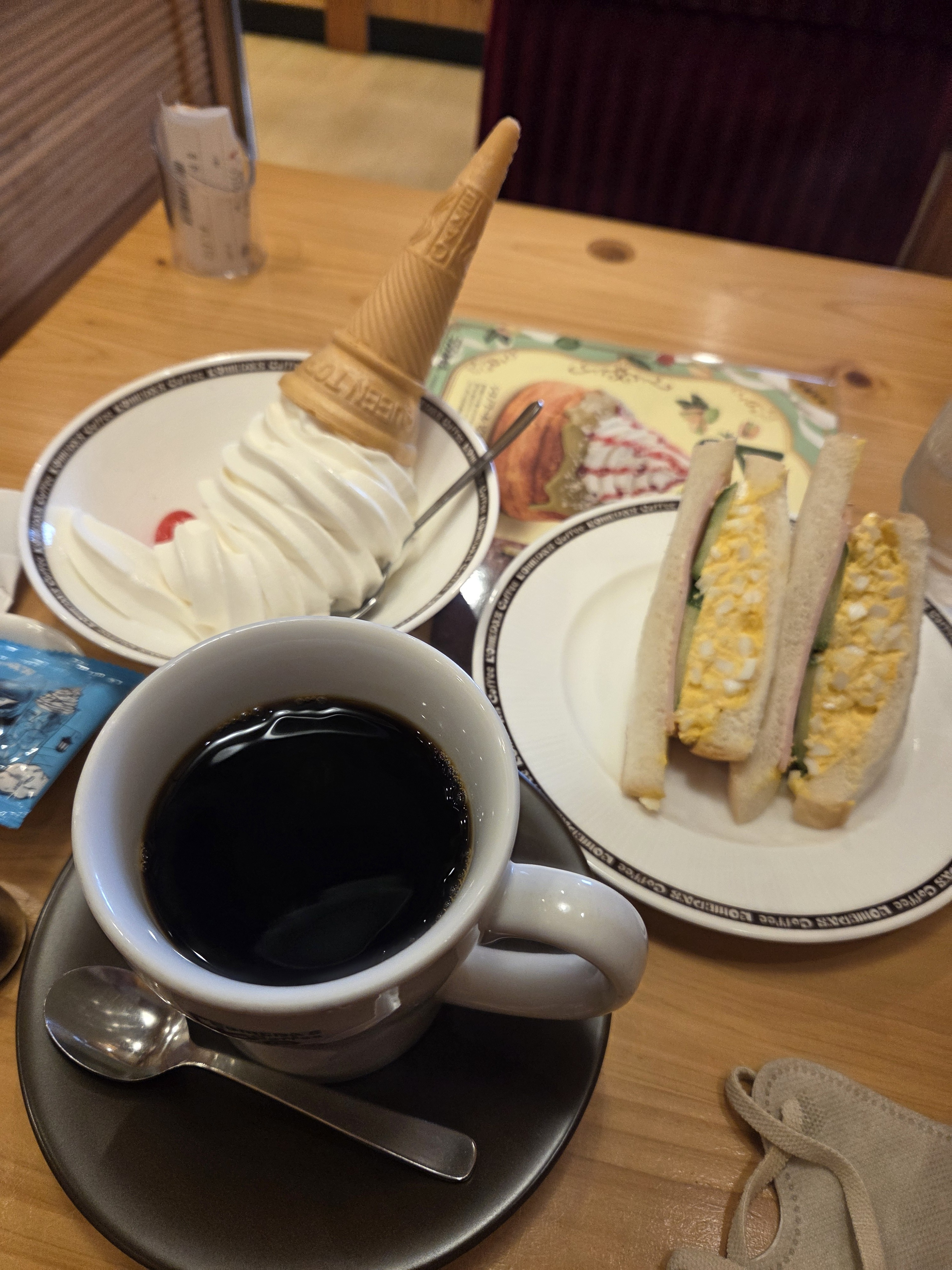 大きなソフトクリームにたまごペーストたっぷりのサンド🎶