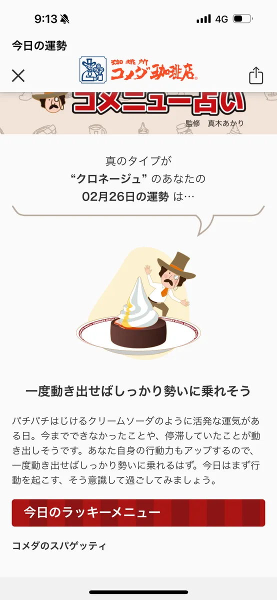 朝食を『今日のラッキーメニュー』にしようと思ったらまさかのコメダのスパゲッティ😝💦