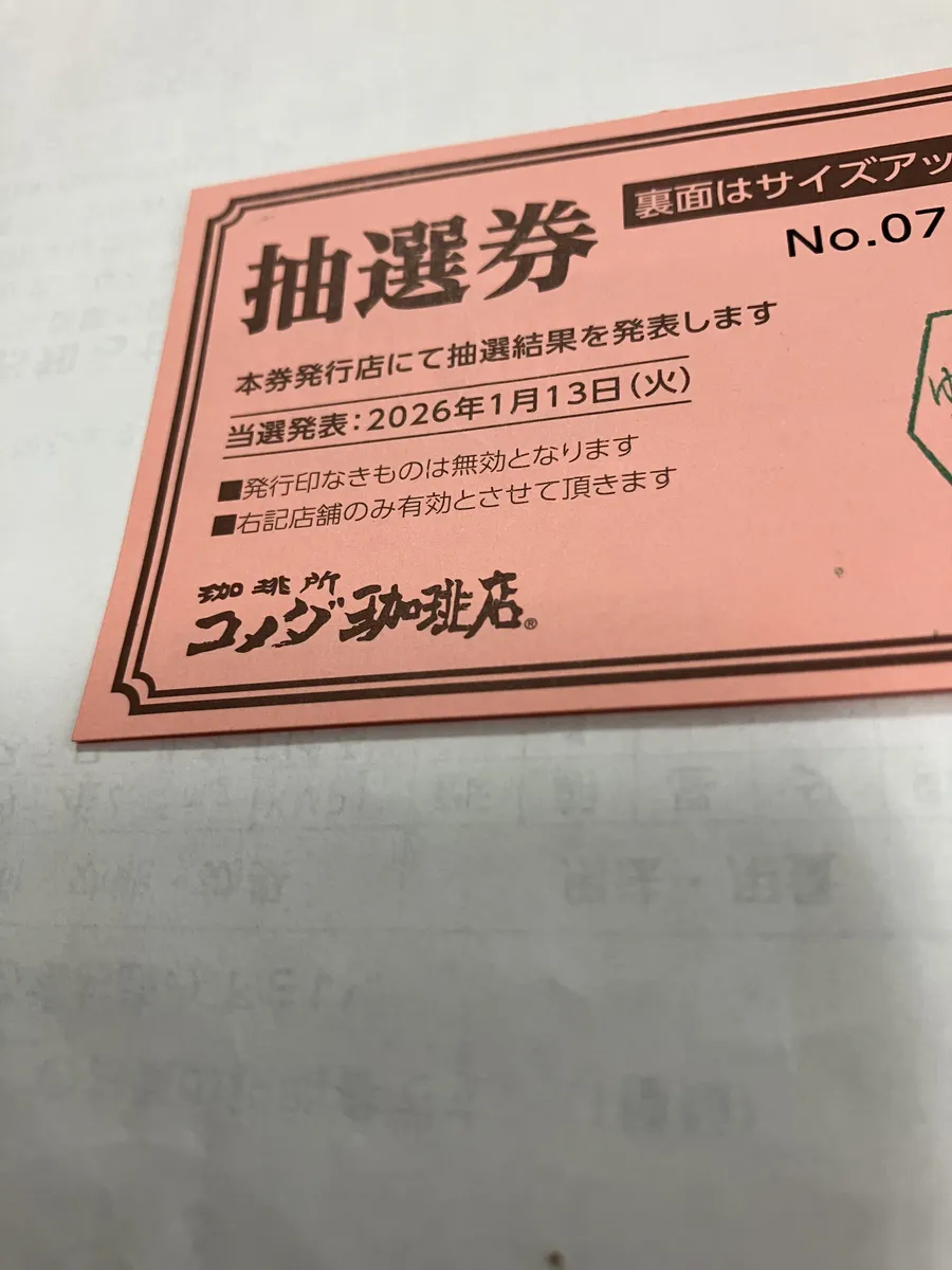 支払い時、五枚綴りのコーヒーチケット🎫が当たる抽選券を頂きました!