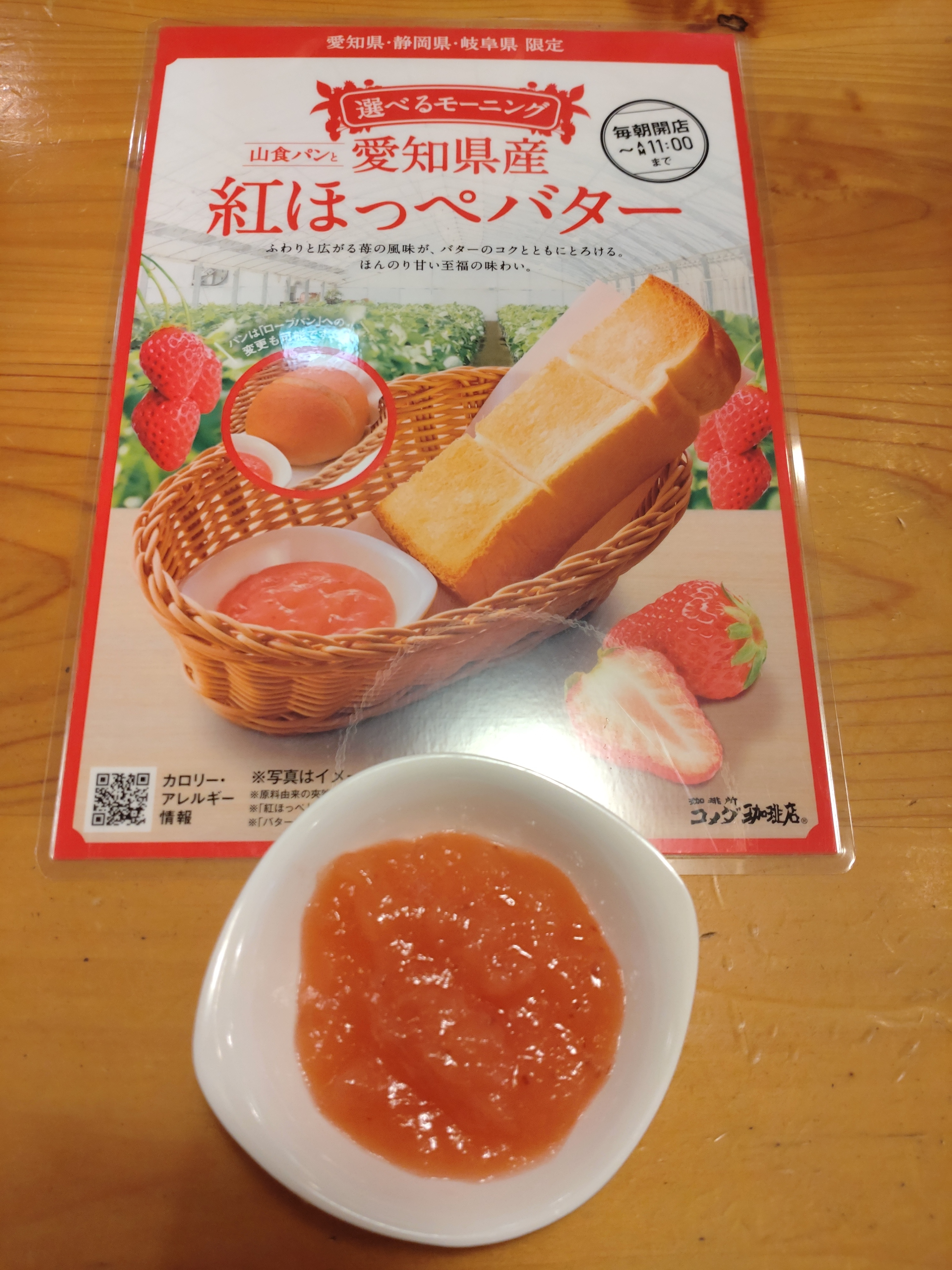 モーニングで限定のご当地ジャム「紅ほっぺバター」を注文しました😌