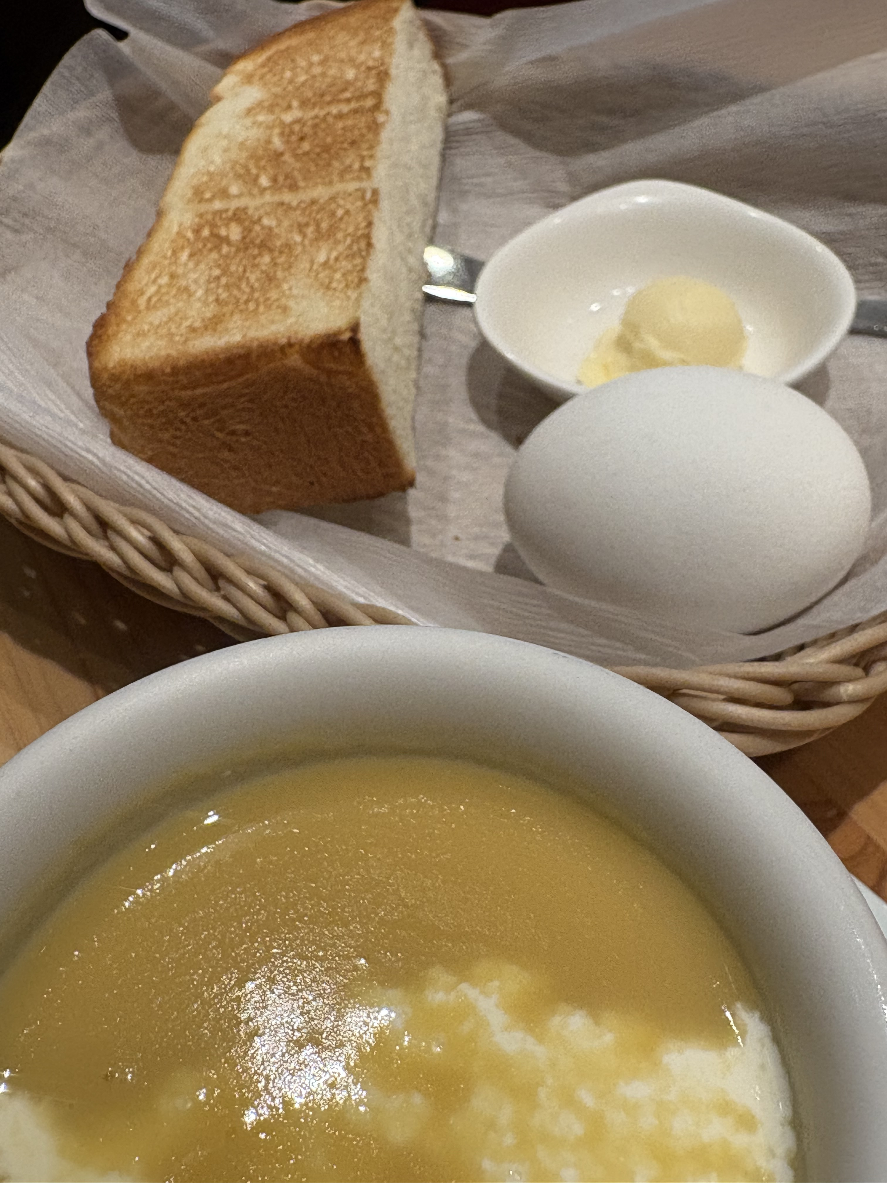 🌽コーンスープでモーニング🥚🍞美味しそうだぎゃー🤤✨