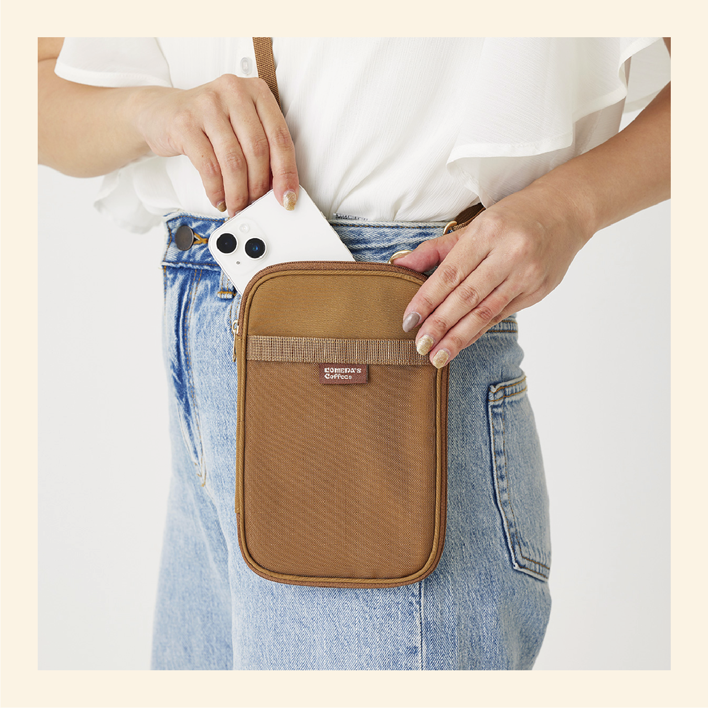 コーヒー染め 多用途ショルダーポーチ