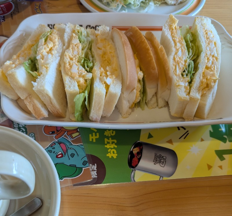 エッグサンドとポテチキ、とっても美味しそうです…😋