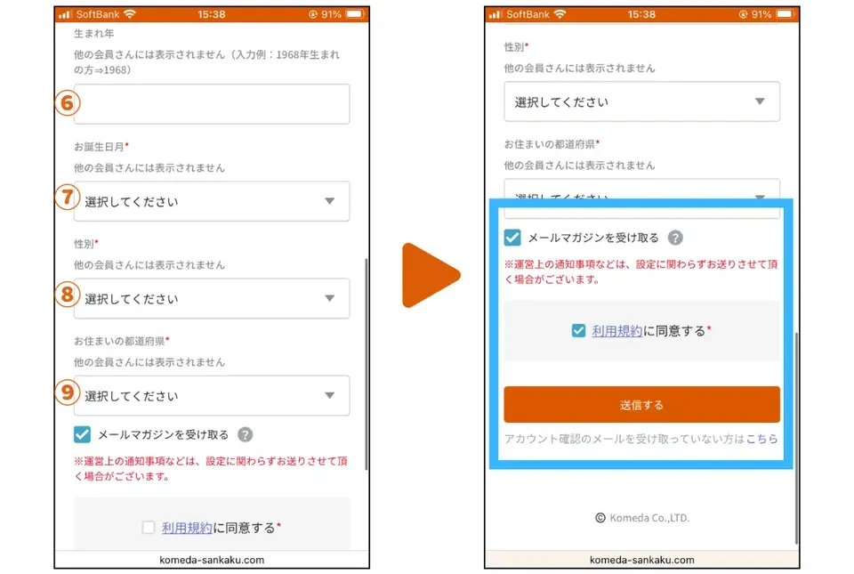 ⑪メールマガジンを受け取る場合はチェックボックスに✓をつけてください
