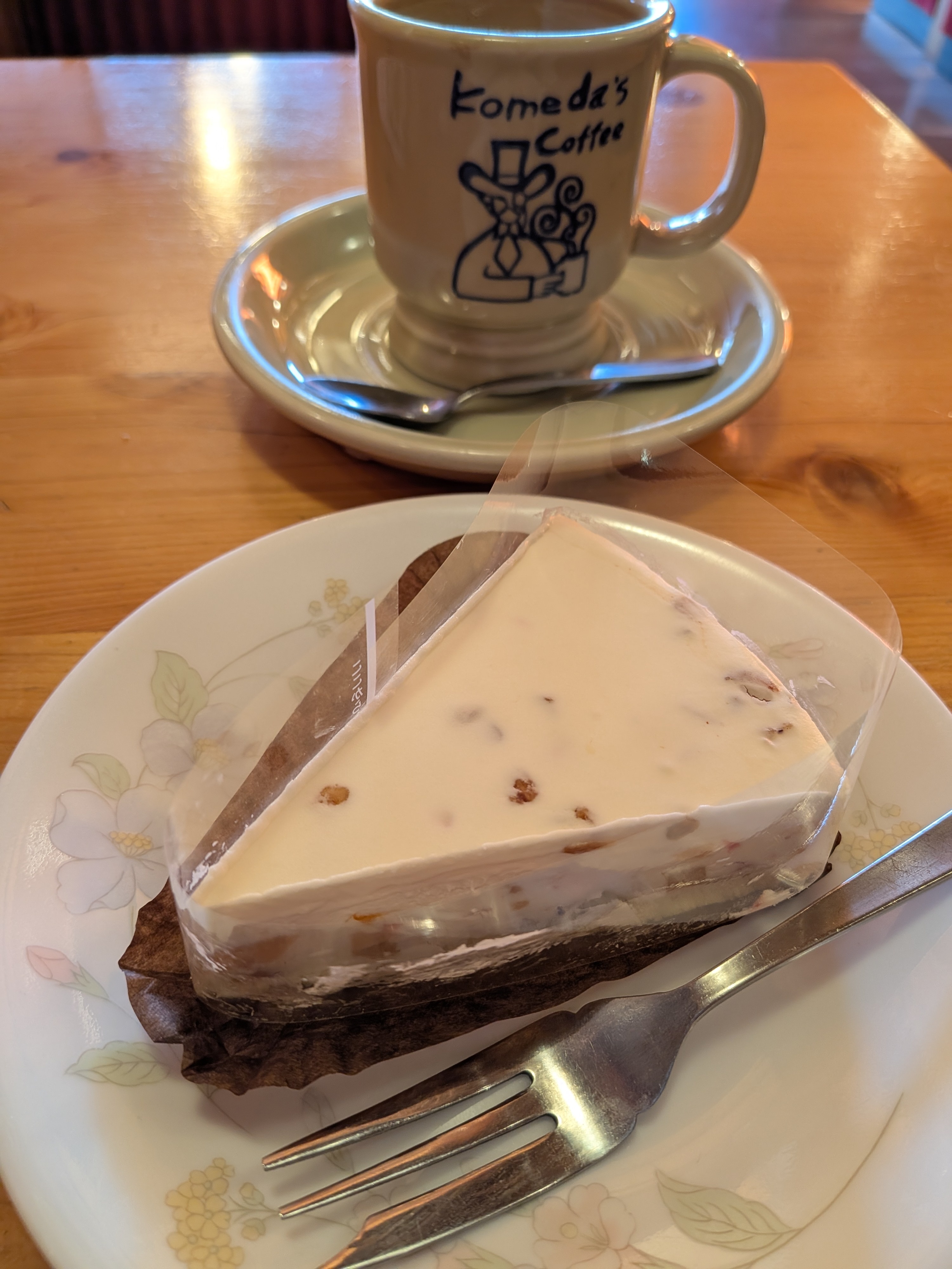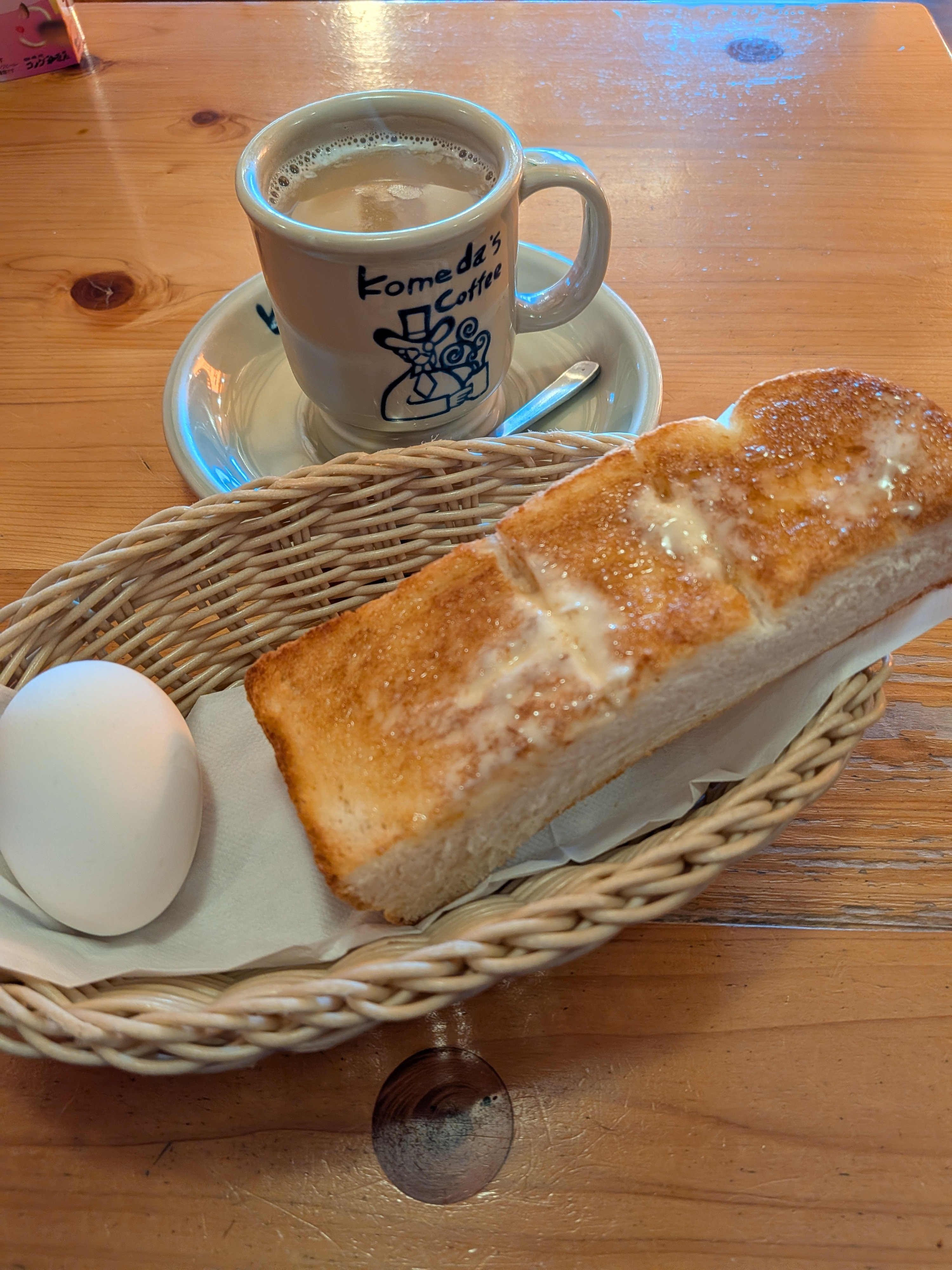おはようございます♪今週もモーニングにやってきました。いつもの食パンとゆで卵に今日は少し寒いのでホットオーレ☕春のケーキも食べてしまいました。くちどけカッサータ美味しかったです🥰