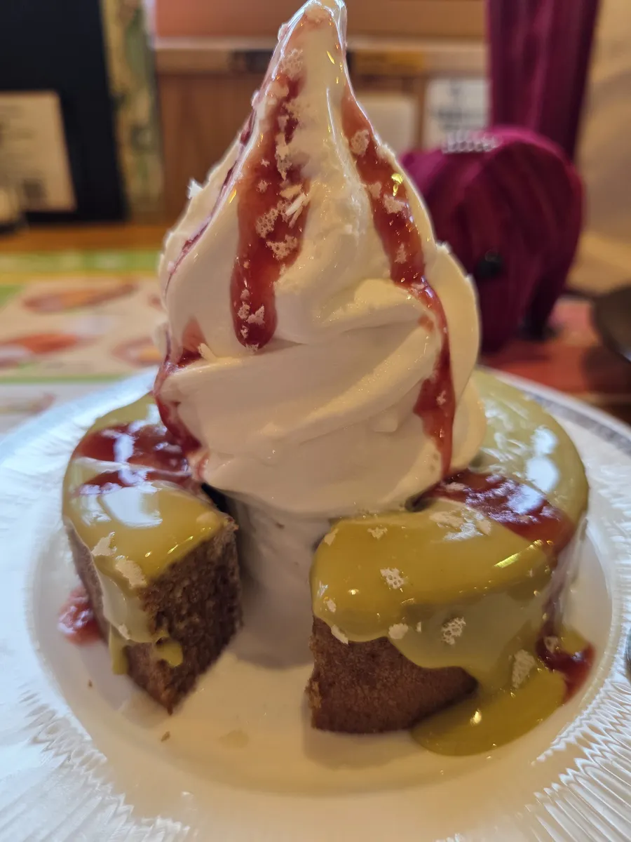 ソースたっぷりソフトクリームぎっしり🍦甘酸っぱくてとても美味しかったです😋🍴💕