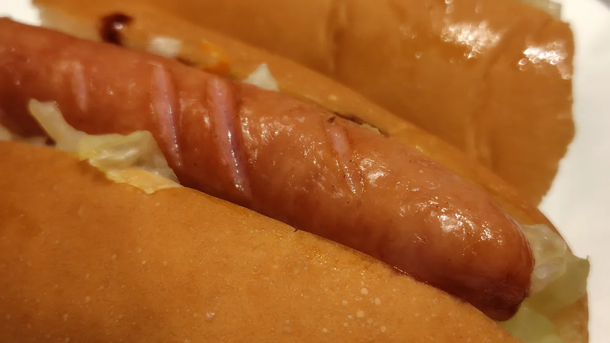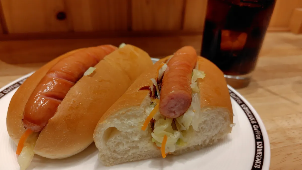 流行りのホットドッグ、ソーセージの切り込みも深く、美味しそう。