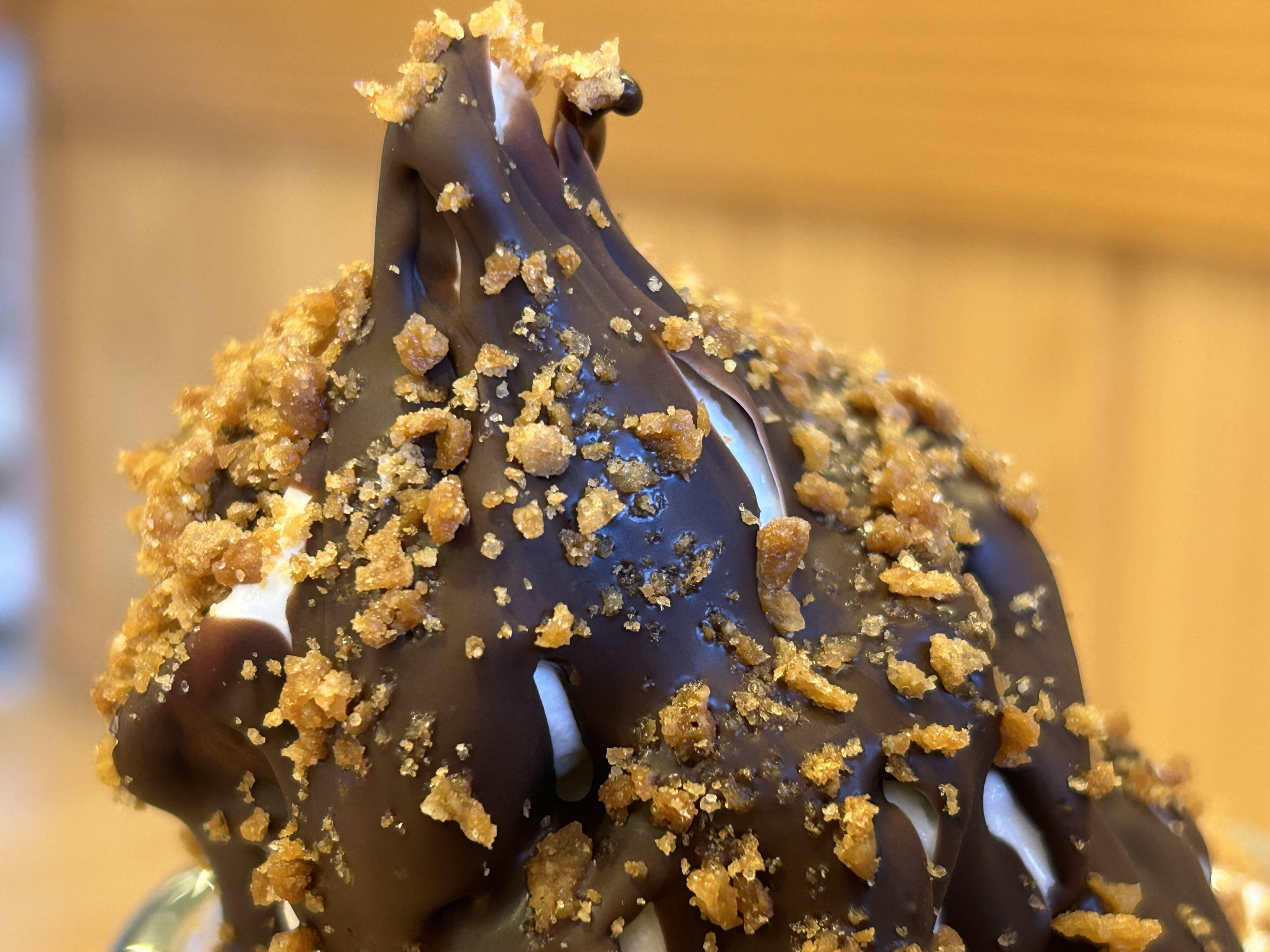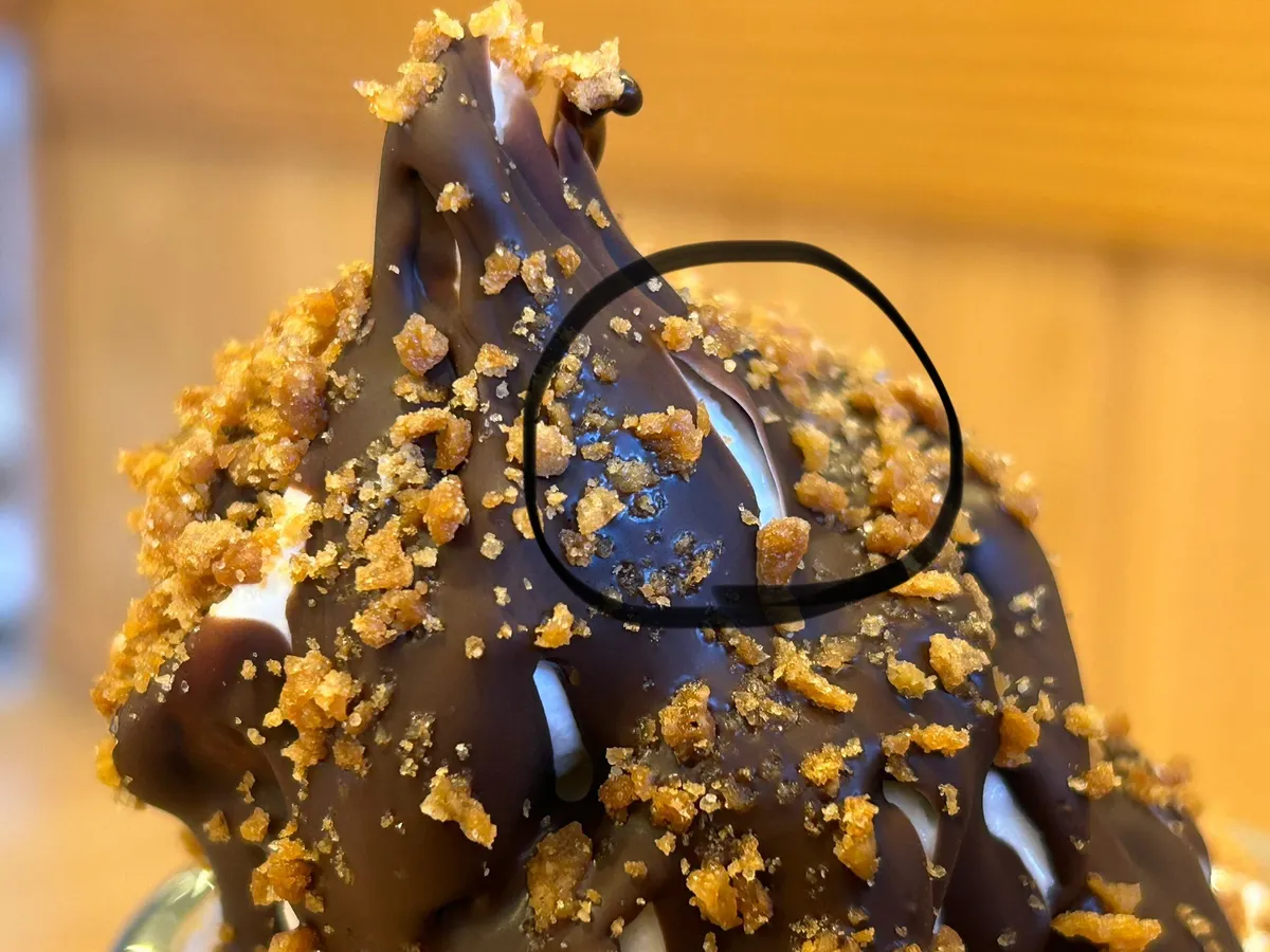 チョコが鉄壁で、どこからスプーンを入れるか迷ってました🥄💦