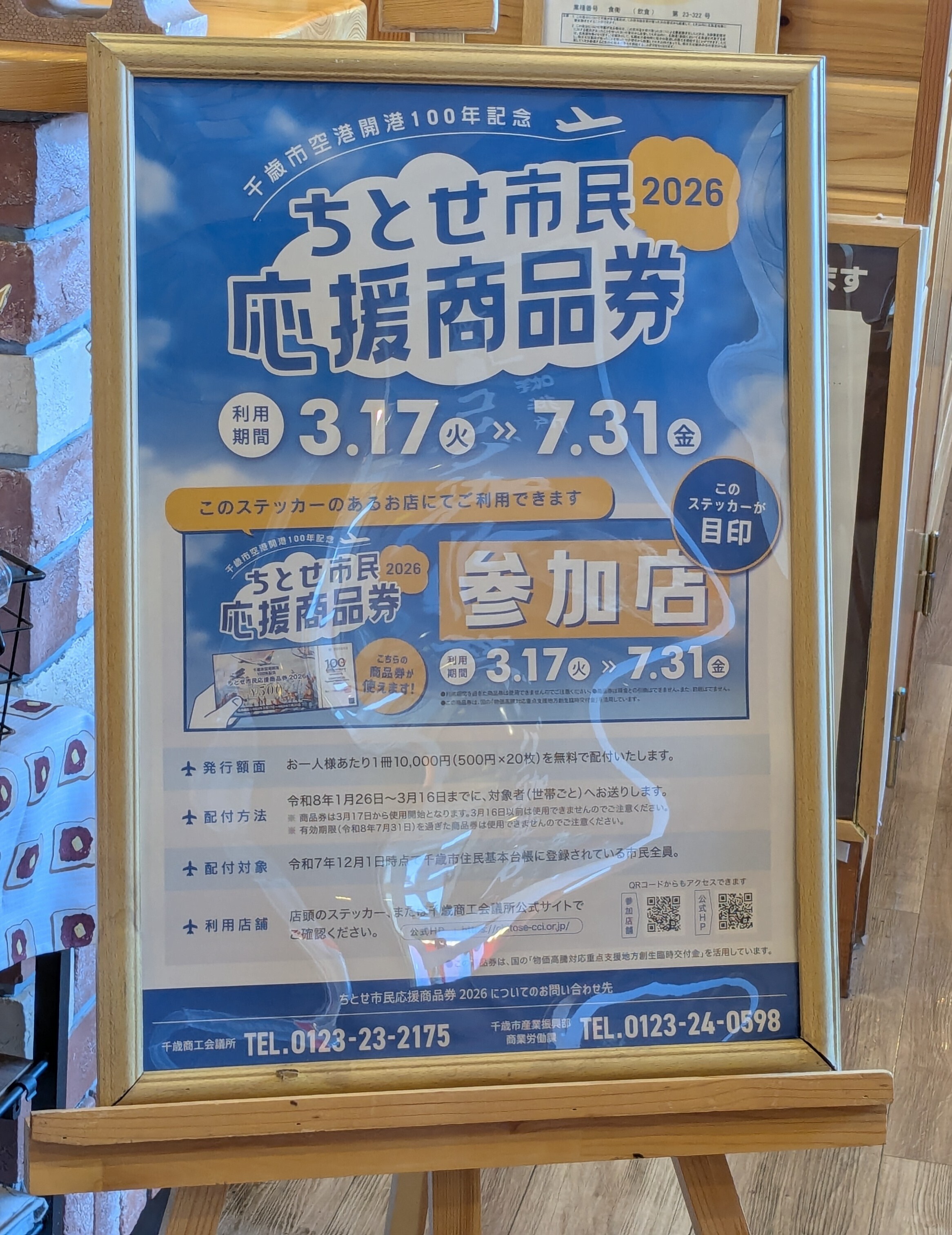 昨日からちとせ市民応援商品券使えるようになりました(7月31日迄)
