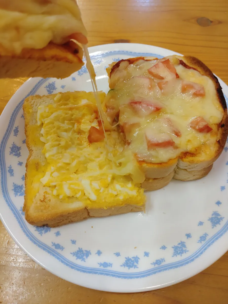 たっぷりたまごのピザトーストを食べました😁