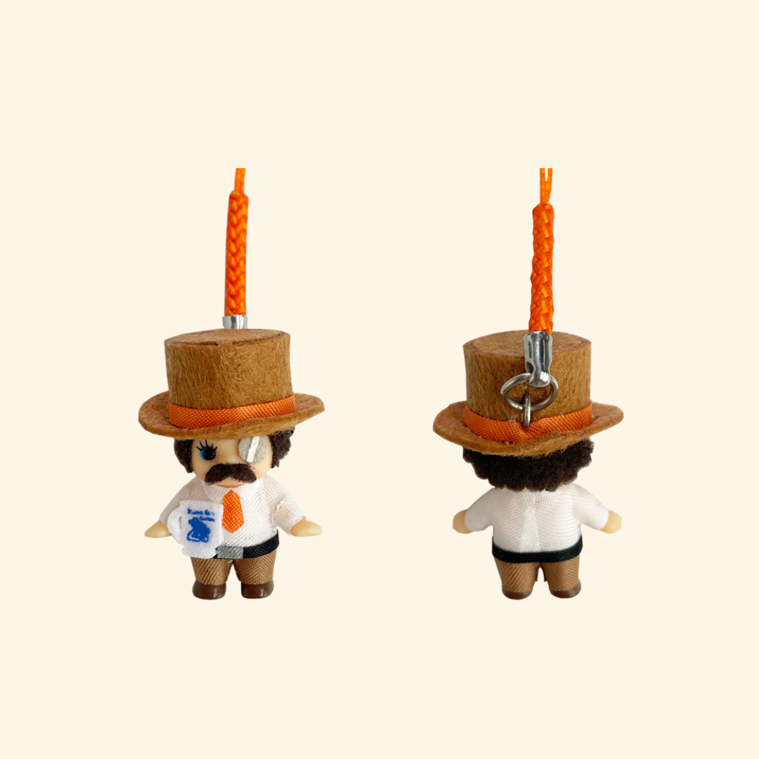コメダンディのコスチュームを着たキューピーちゃん、髪の毛のふわふわ具合やモノクル、コメダブレンドのカップまで、とっても細かい!