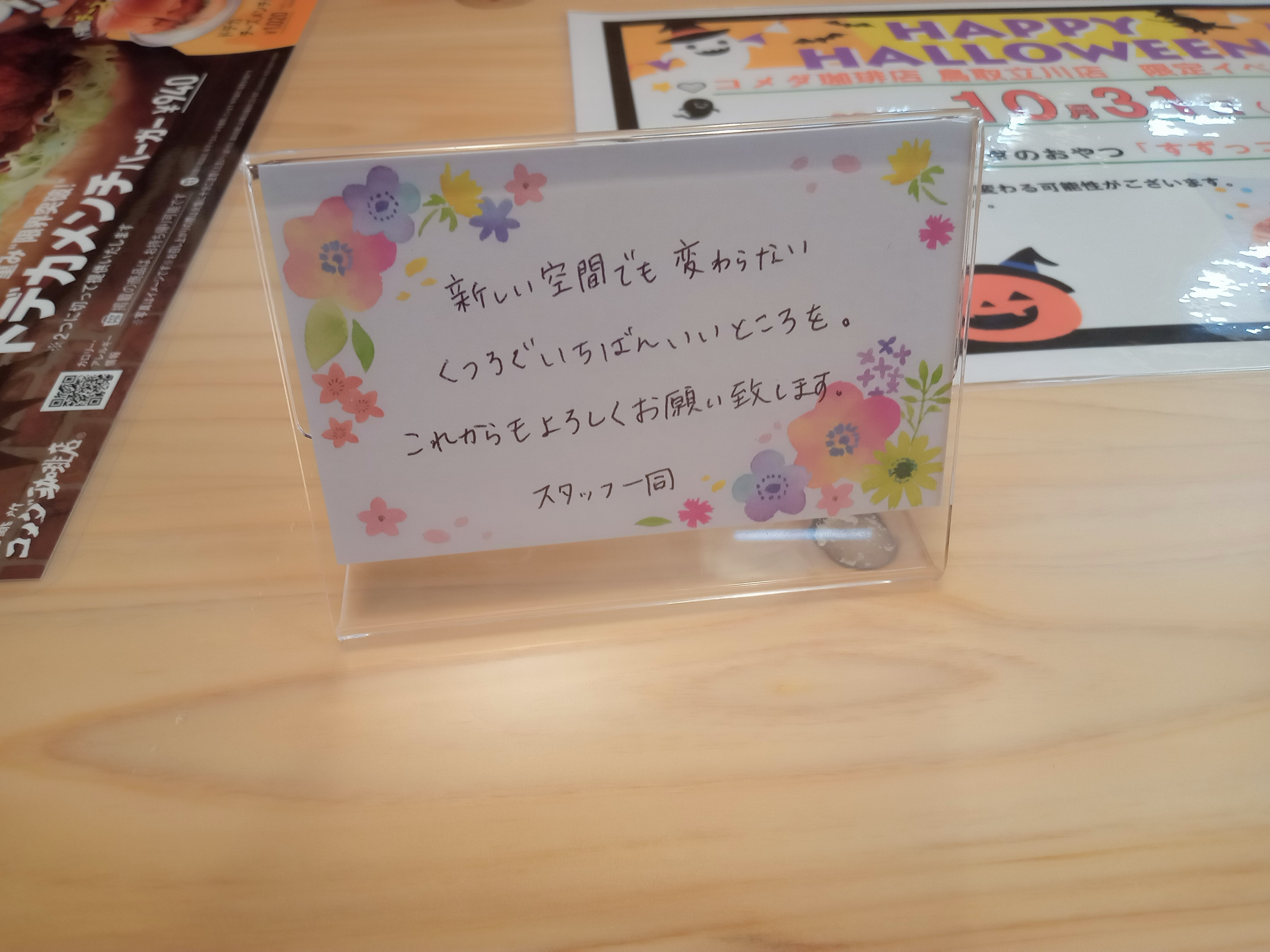 素敵な手書きメッセージ、コメダさんっぽいです…😍