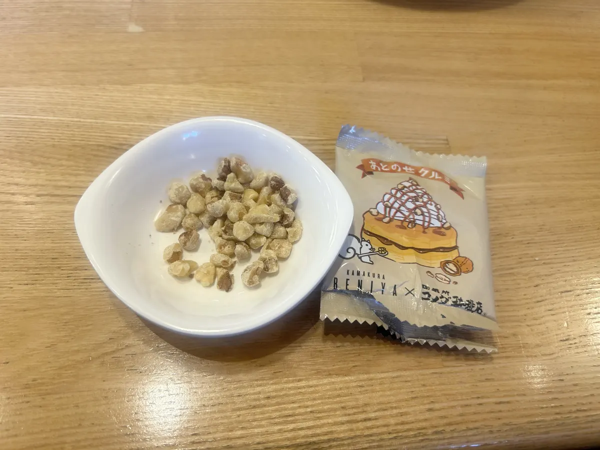 そういえば、キャラメルオーレクルミッ子はあとのせクルミの他に豆菓子は付いて来ましたか?