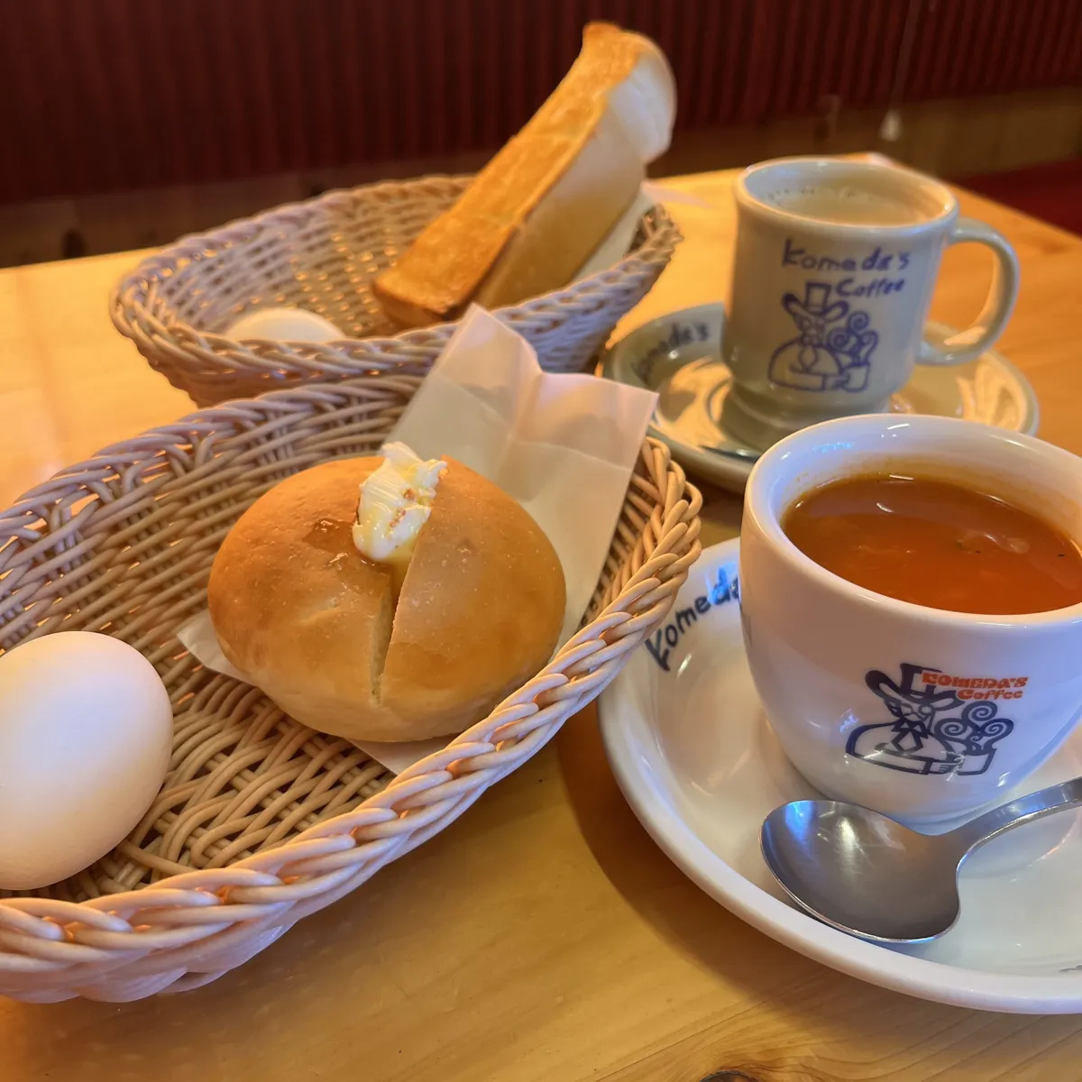 そして、昨日のコメダ納めのミネストローネにローブパン🧈ゆで卵🥚