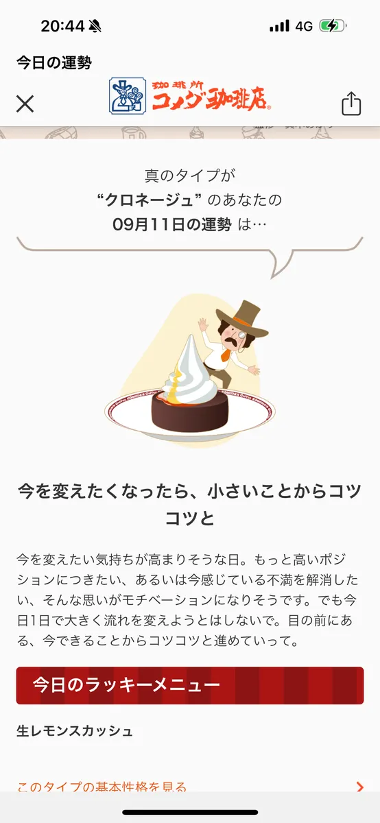 トップ > コメダ写真館 > 木曜日のラッキーメニュー🍋 うさごん 2025/09/12 01:23 木曜日のラッキーメニュー🍋 雨宿りをしながらみそカツパンをいただいたのでまだお腹いっぱい😋。 夜は飲み物と豆菓子くらいが丁度良い感じです🙂。 本日のラッキーメニューは生レモン🍋スカッシュ💛✨。 午後から土砂降りになったせいか静かな店内でまったり過ごせました😌。 豆菓子は8粒🎶…形は微妙ですが『8』を作りました😅💦 いいね 共有する 共有する X facebook LINE リンクをコピー コメントする 3 件の返信 (新着順) ミュートしたユーザーの投稿です。 投稿を表示 コメディストA 2025/09/12 21:49 うさごんさん♪こんばんは⭐️ ランチは土砂降りの中コメダへ避難に行かれて、夜はコメダを出てから雷雨に遭遇されましたが、すぐにバスが来てずぶ濡れになる事態を免れるというミラクル⚡️⚡️⚡️ 雨に降られながらも、コメダでまったりできてよかったですね😍 豆菓子アート🎨「8」をジーッとみていたら、なんだかサザエさんのヘアスタイルに見えてきて、ほっこりさせていただきました🥰 明日も素敵な一日をお過ごしくださいね💕💕💕 いいね 返信する ミュートしたユーザーの投稿です。 投稿を表示 うさごん 2025/09/17 01:41 コメディストA コメディストAさん、こんばんは😃。 このところ本当にお天気が不安定で、折り畳み傘🌂を持った方が良いと思いつつも、荷物になるのが嫌で雨を掻い潜るような日々を送っています😅💦 ミラクルもきっとコメダのラッキーメニューの御利益かなぁ🤔って思うと、またラッキーメニューが食べたくなります💝✨。 8…本当だ〜😍💓 じ〜〜〜って見ているとサザエさんのヘアスタイル💇♀️に見えてきますね❣️ 新たな発見をありがとうございます😆❤️。 コメントありがとうございます🌻。 返信が大変遅くなってしまいましてすみません🙇💦 水曜日も素敵💓な一日をお過ごしください🥰💕。 いいね 返信する ミュートしたユーザーの投稿です。 投稿を表示 のりべ 2025/09/12 18:30 うさごん うさごんさん、こんばんは 昼頃、一時的にうちももの凄いどしゃ降りでしたよ コメダで雨宿りもいいですね☔ 😄🍹 いいね 返信する ミュートしたユーザーの投稿です。 投稿を表示 うさごん 2025/09/17 01:10 のりべ のりべさん、こんばんは😃。 最近急に暗くなって来たなぁ…って思うと、次の瞬間いきなり土砂降りってパターンが多いですね😅💦 のりべさんはお洗濯物は大丈夫でしたか? サクサクみそカツパンが最高に美味しかったので、夜はさっぱりとした生レモン🍋スカッシュがとても美味しかったです🎶 雨宿りって時と場合にもよりますが、急いで無い時には良いものですね❣️ コメントありがとうございます🌻。 返信が大変遅くなってしまいましてすみません🙇💦 水曜日も素敵💓な一日をお過ごしください🥰💕。 いいね 返信する ミュートしたユーザーの投稿です。 投稿を表示 タダ 2025/09/12 07:00 うさごんさん、おはようございます。 そちらは土砂降りだったんですね。 こちらも雨予報でしたが、ほとんど降りませんでした。今朝は雷と雨音で目が覚めました。生レモンスカッシュ、美味しそうです。豆菓子、細長いものやまん丸のものや、眺めていても楽しいですね。 今日も良い一日をお過ごしください。 いいね 返信する ミュートしたユーザーの投稿です。 投稿を表示 うさごん 2025/09/12 15:39 タダ タダさん、こんにちは😃。 外は凄い雨でもコメダ珈琲店の中は快適そのものなので、ラッキーメニューの生レモンスカッシュを飲みながらまったり過ごせました😋。 豆菓子、本当にひとつとして同じものが無いので、豆皿の中でコロコロさせて形を作る時にも楽しめます💗。 こちらはコメダ珈琲店を出たら稲光がピカピカ✨していて、バス🚌を待っているうちに雨も降ってきて、綺麗な稲光を眺めていたらあっという間にバスが来ました😅💦 今日も雨が降ったり止んだり、傘が手放せない一日になりそうです☔️。 タダさんのお住まいの地域は今は大丈夫ですか? 雨が降ったら気温が下がってとても過ごしやすくなりました❣️ 社内では人事異動が発表されて、どこもその話題で持ちきりです😆。 コメントありがとうございます🌻。 今日も素敵💓な一日をお過ごしください🥰💕。 いいね 返信する