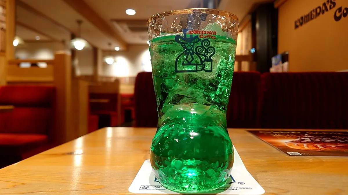 『今日のラッキーメニュー』のメロンソーダ、透明感があってしゅわしゅわしている感じが本当に綺麗ですね💚✨。