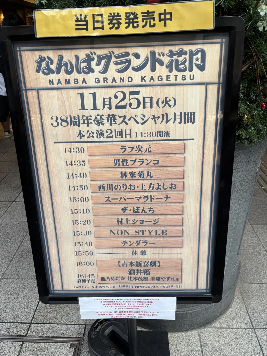 なんばグランド花月、NON STYLEにテンダラー豪華ラインナップでうらやましいです♬
