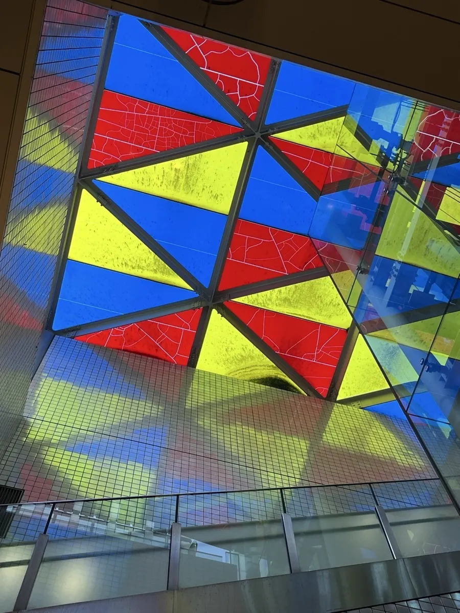 ルーセントアベニューの中間地点、エレベーターのある場所から、パブリックアートを抜けて地上へ出ました。見上げた空がきれいでした。