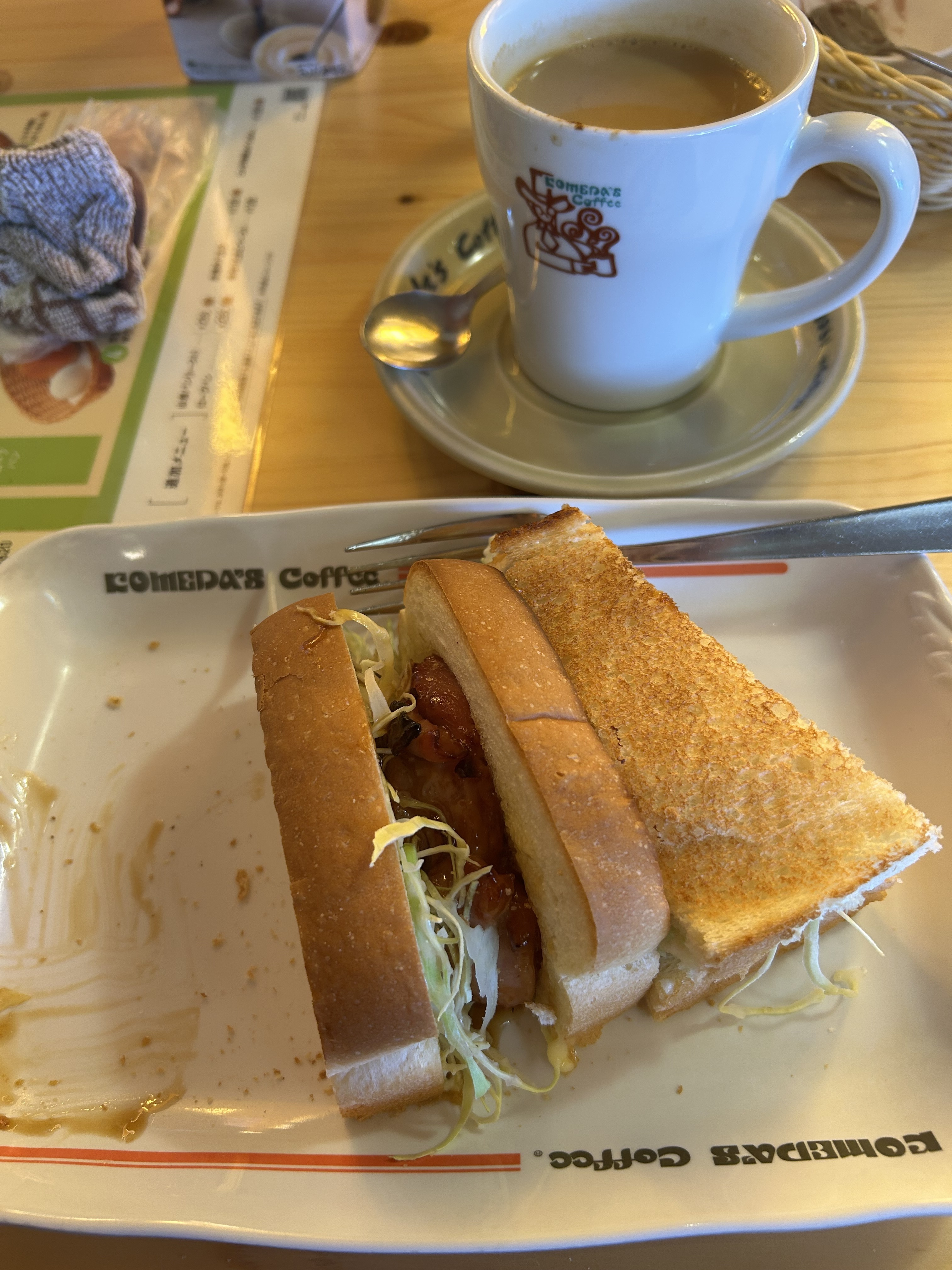 朝から あみ焼きチキンホットサンド、素敵です😋