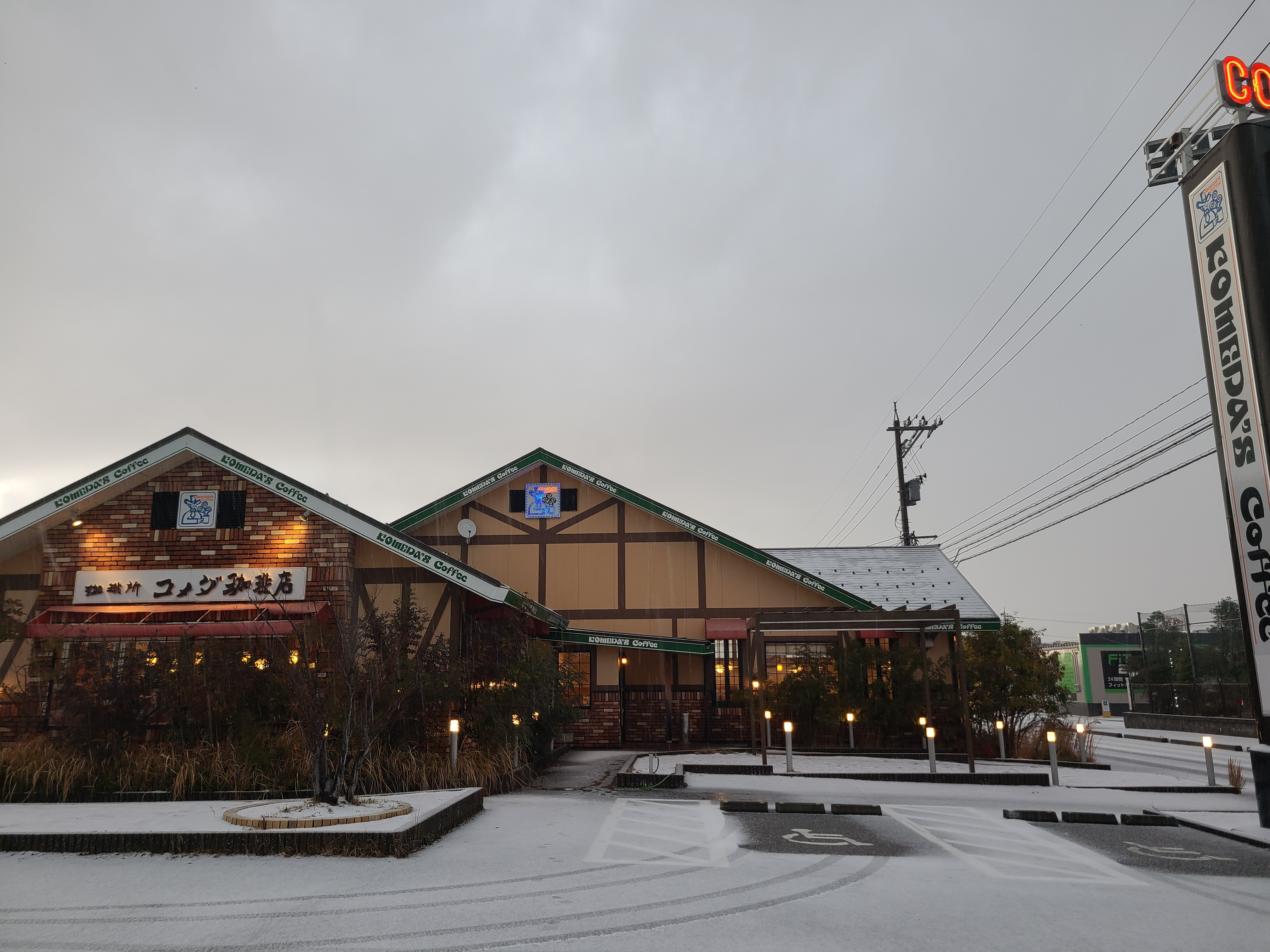 車椅子使用者用駐車場だけ、停まっていた? 雪かきしたのかな?