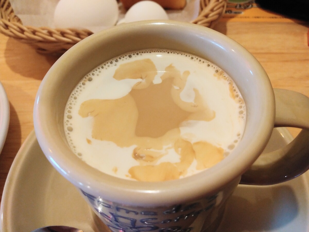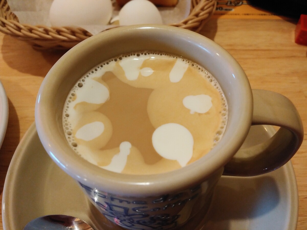 ここで気付く。「あ、ラテアートはふわふわホイップのような泡だからするーっと描けるんじゃ…」ガーン・・・・・
