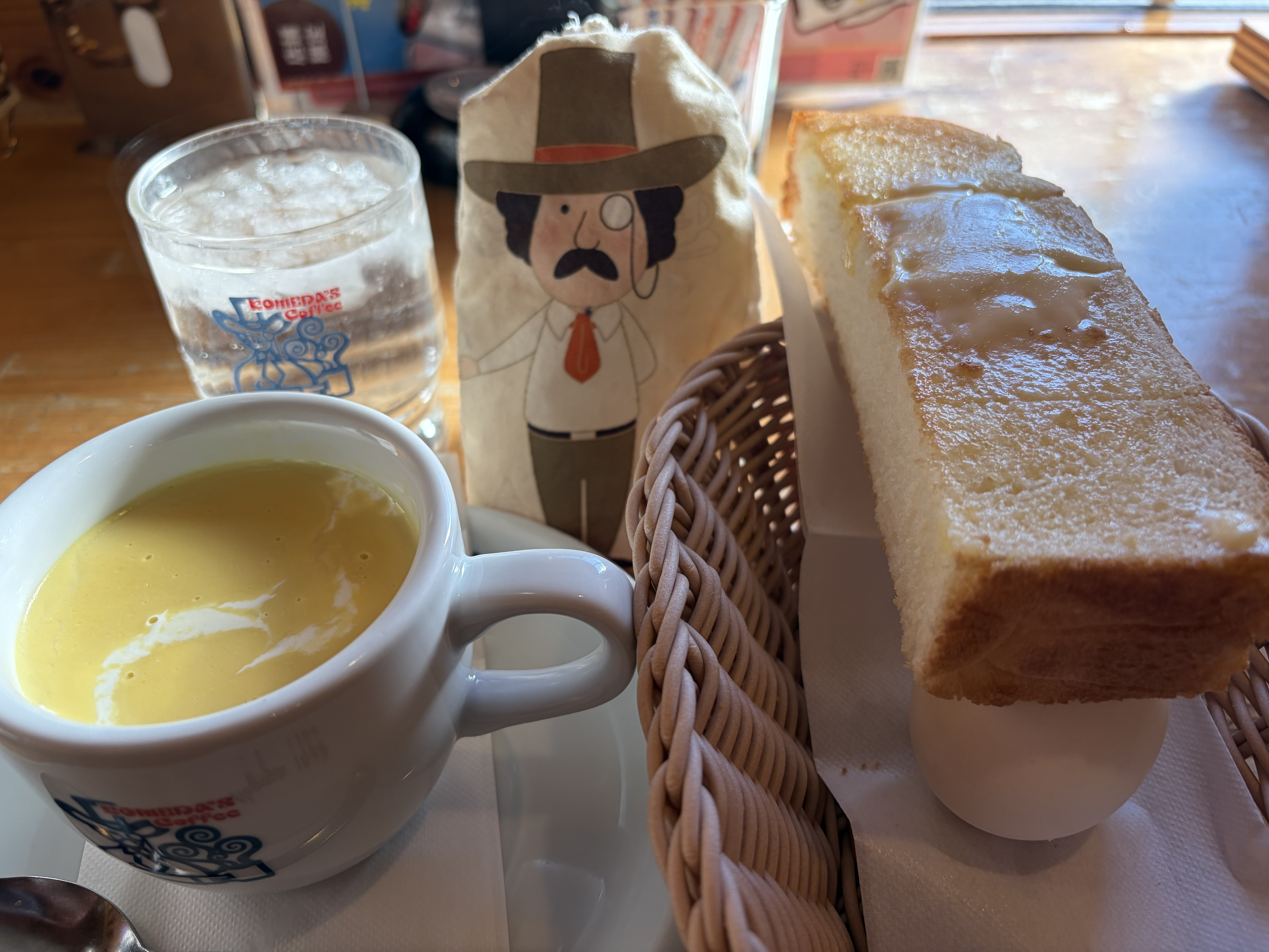 充実した大晦日から新年のコメダ始めのコーン🌽スープと1番モーニング、バター🧈多めで嬉しい一年の始まりですね😍❣️❣️❣️