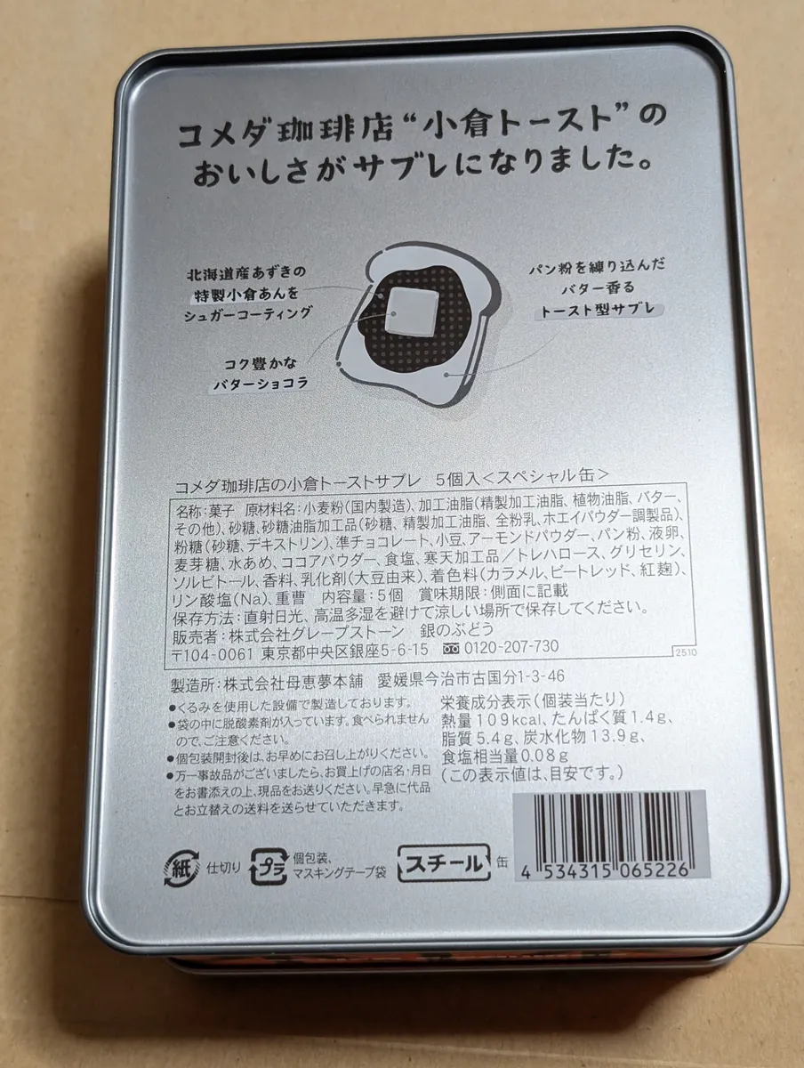 小倉トーストサブレの通常版の箱の絵も可愛いのにスペシャル缶が更にー😆💕
