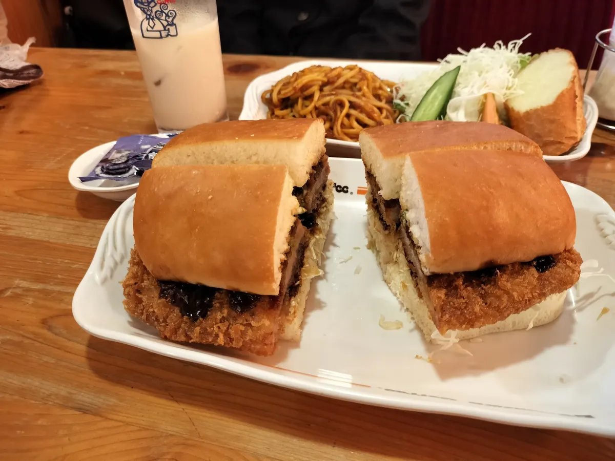 ミートソースにみそカツパン、シメはごちそうカスタード🍝🥪🍰✨️