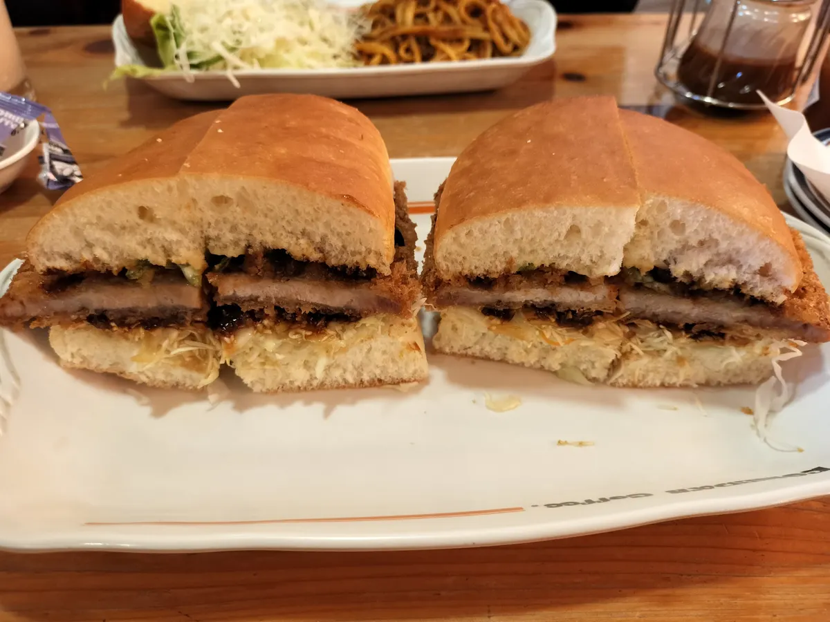 カツはザックザクだし、パンからはみ出して大きいし、味噌󠄀も濃厚でおいしい‼️