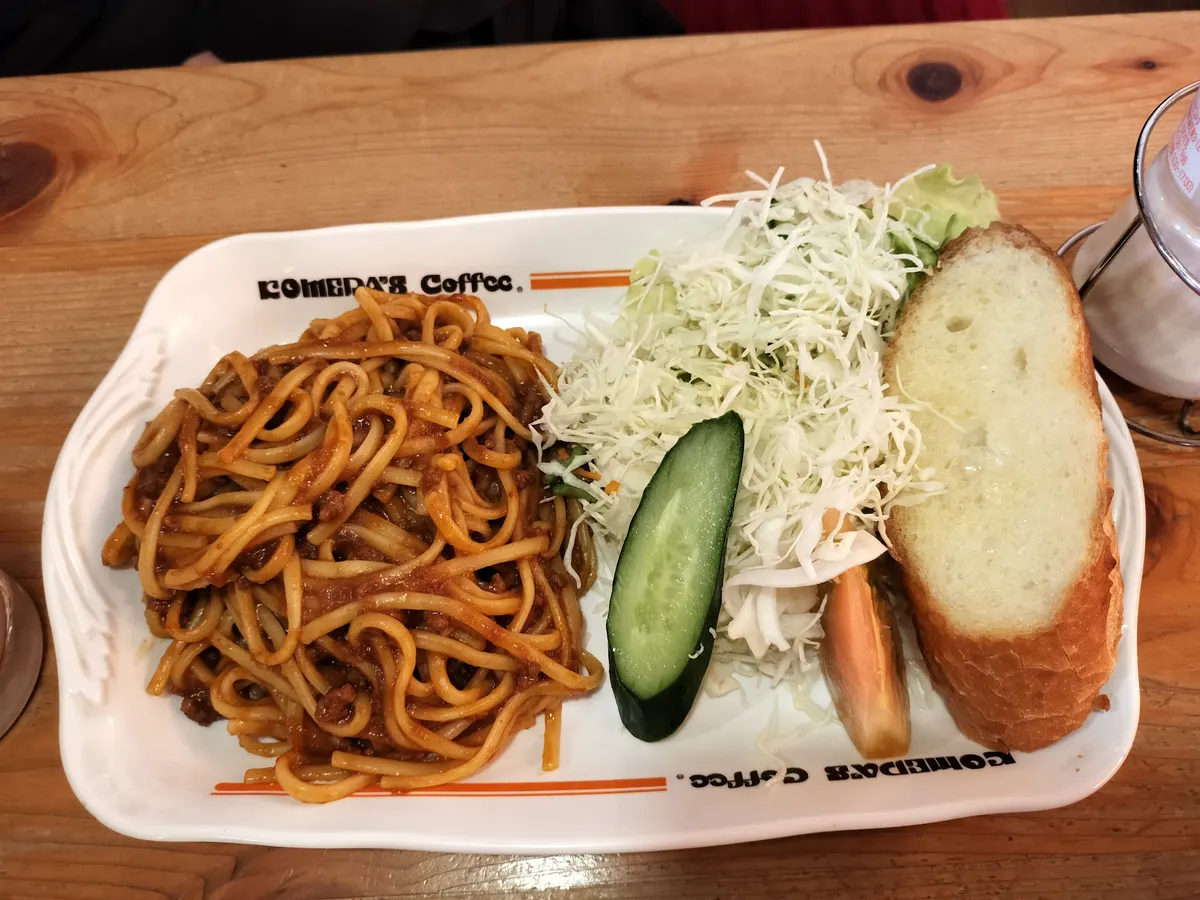 コメダのスパゲッティ、麺がモチモチして大好き💕子どもの好きなミートソースです🍝
