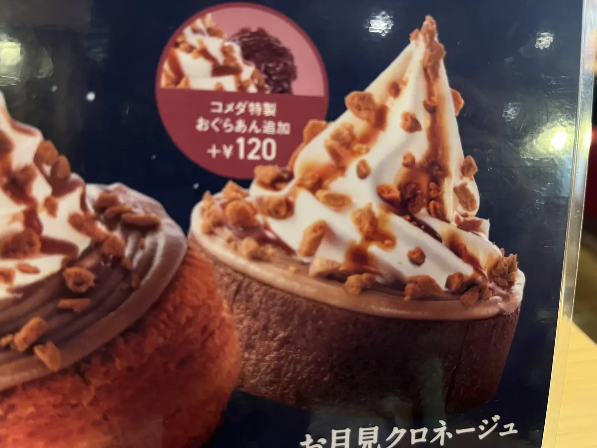コメカキャンペーン中なので、コーヒーチケットが使えないメニューを選んで、今日はウインナーコーヒーとお月見クロネージュキャラメルマロン🌰