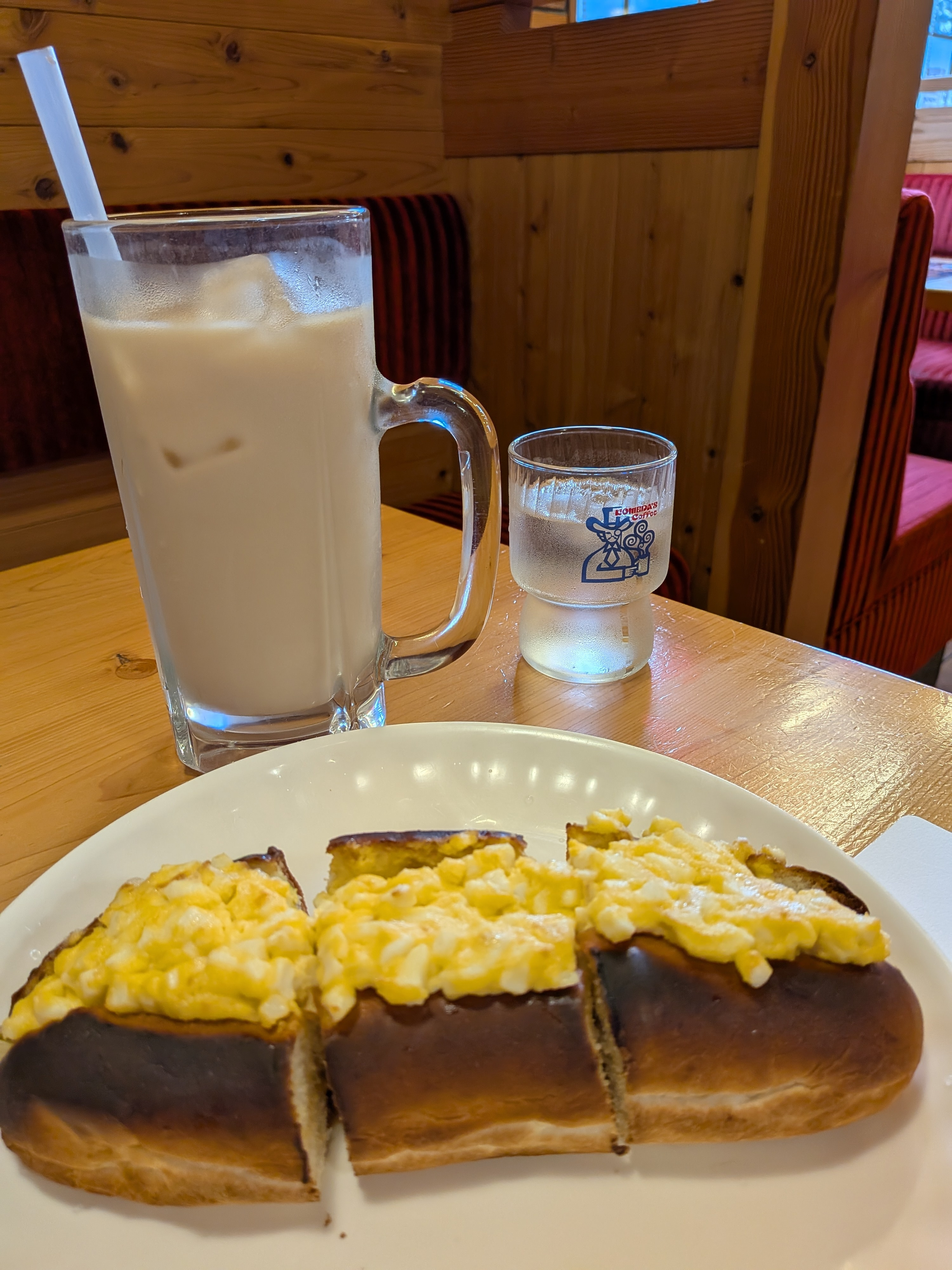 カリッとドッグパンにたっぷりのたまごペースト☺️好みの焼き加減で良かったですね!