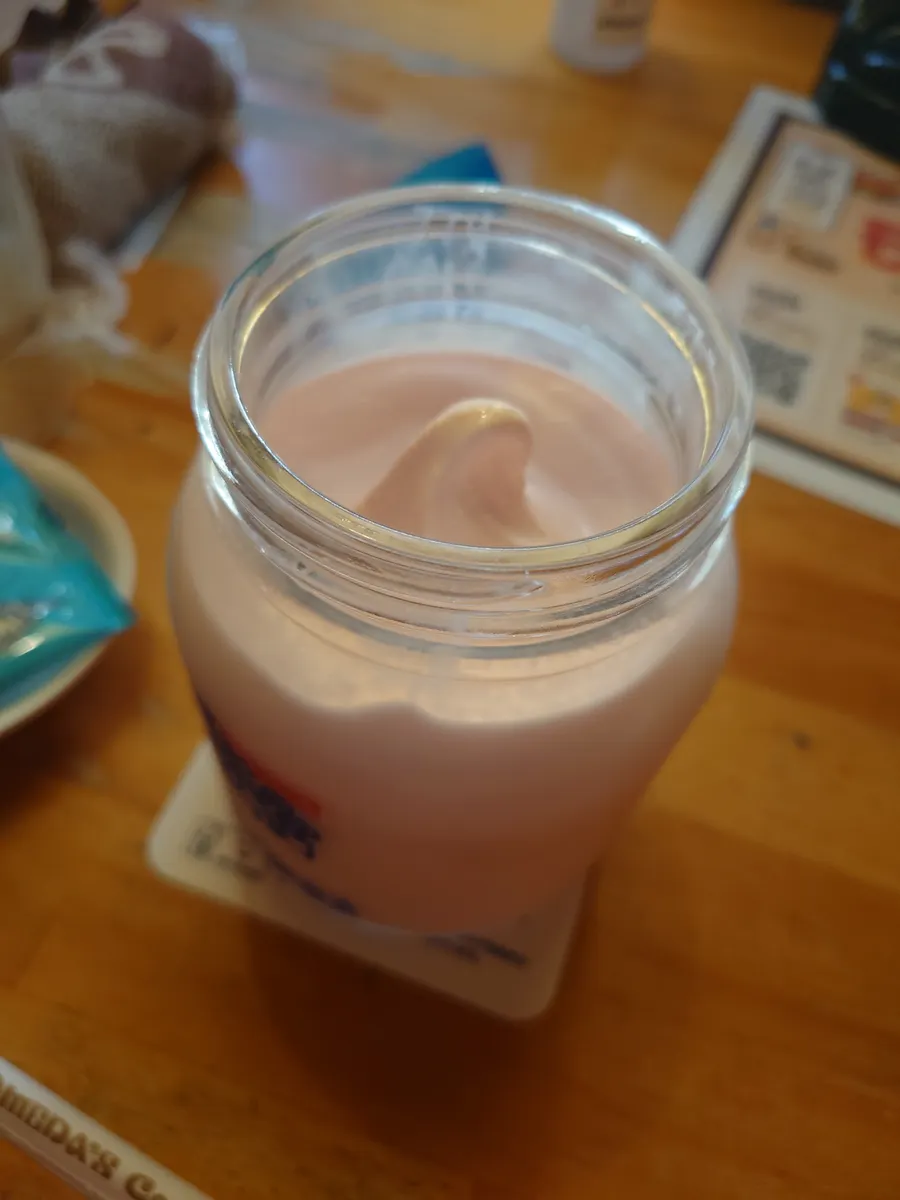 本日のラッキーメニューがストロベリーシェイクなので暑くなったし、喉渇いたし、初めて頂きました。