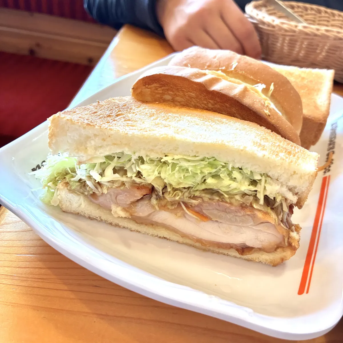 モーニングからのシロノワールのホイップに追加のモーニング、あみ焼きチキンホットサンド盛りだくさんで幸せですね〜✨️