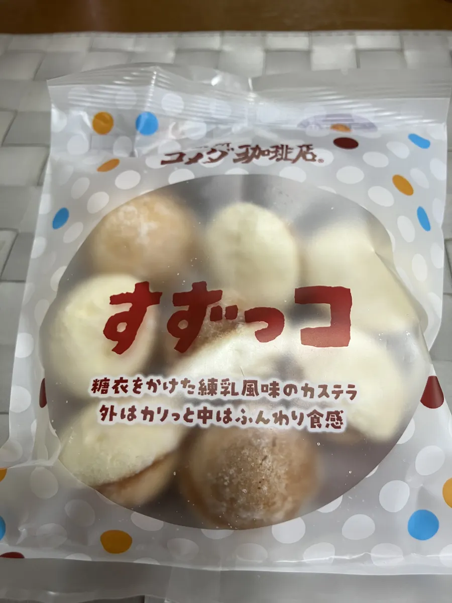 今朝、マイコメレジ横の「すずっコ」を購入し、午後のお茶で頂きました❗️