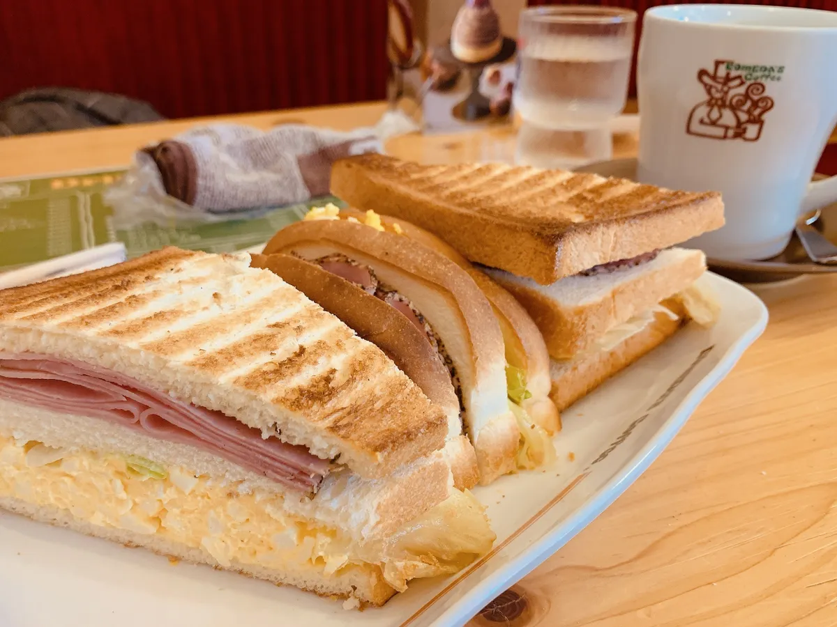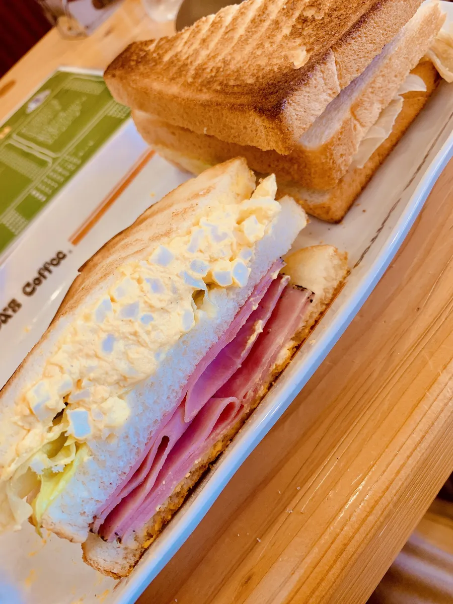 ☕️モーニングからのペッパーポークとたまごの贅沢サンドトースト美味しそうだぎゃー🤤✨