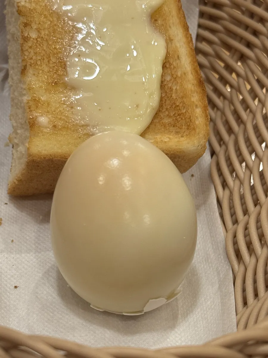 日焼けしたゆでたまごさん🥚は、こんがりバタートーストと同化するくらい色が似ていますね💖
