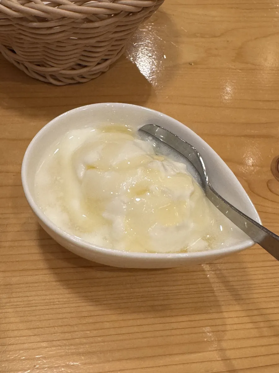 美味しそうな①モーニング+はちみつたっぷりヨーグルト🍯