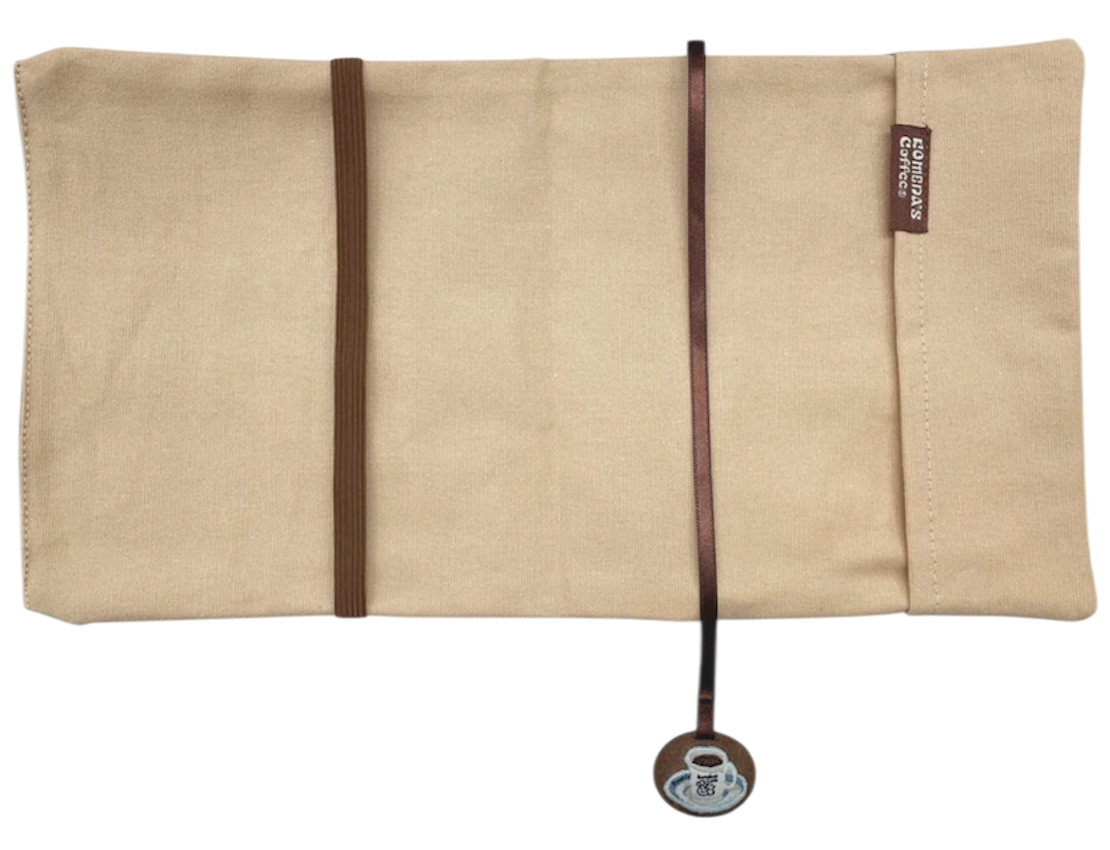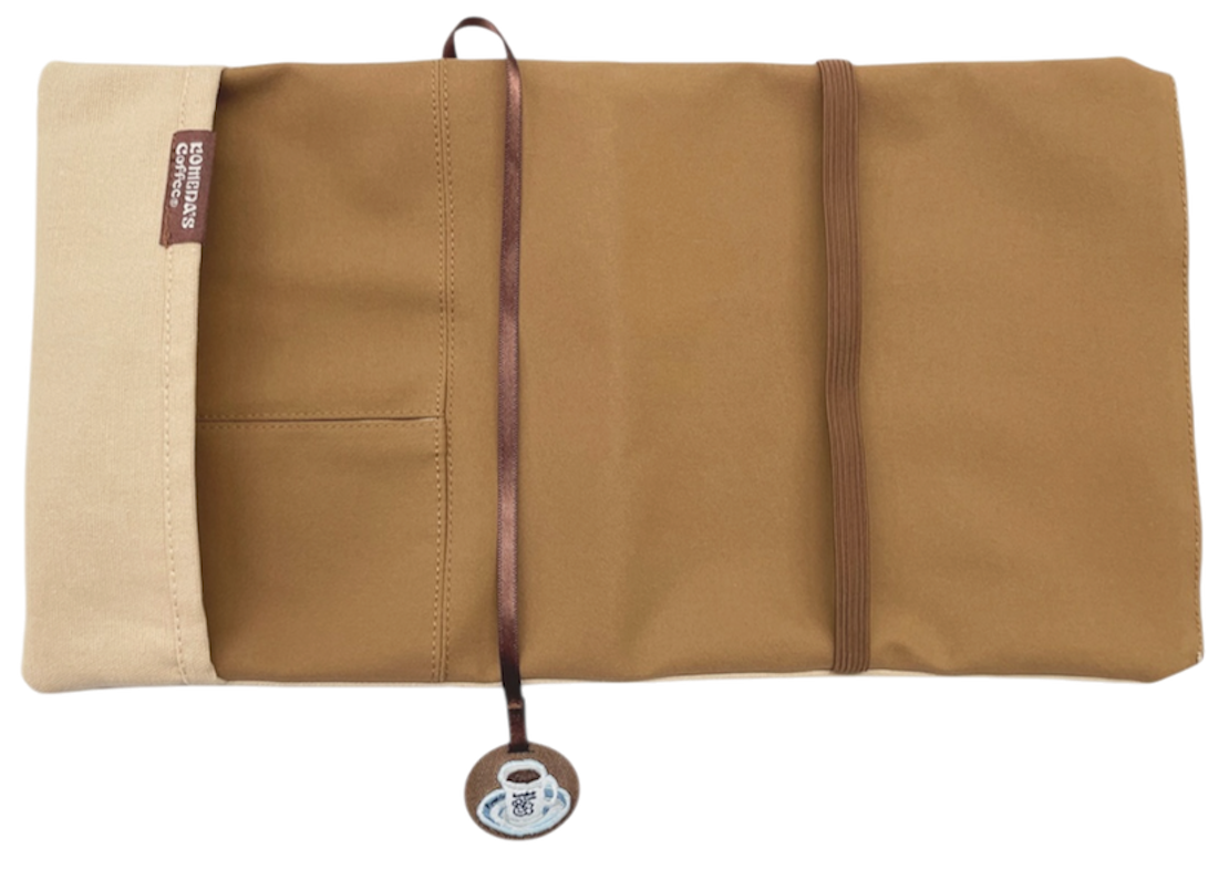 こちらがコーヒー染めのブックカバー。しおり部分にはコメダブレンドがついていて、しおりとしての役割に加えてかわいさをプラスしてくれています☕