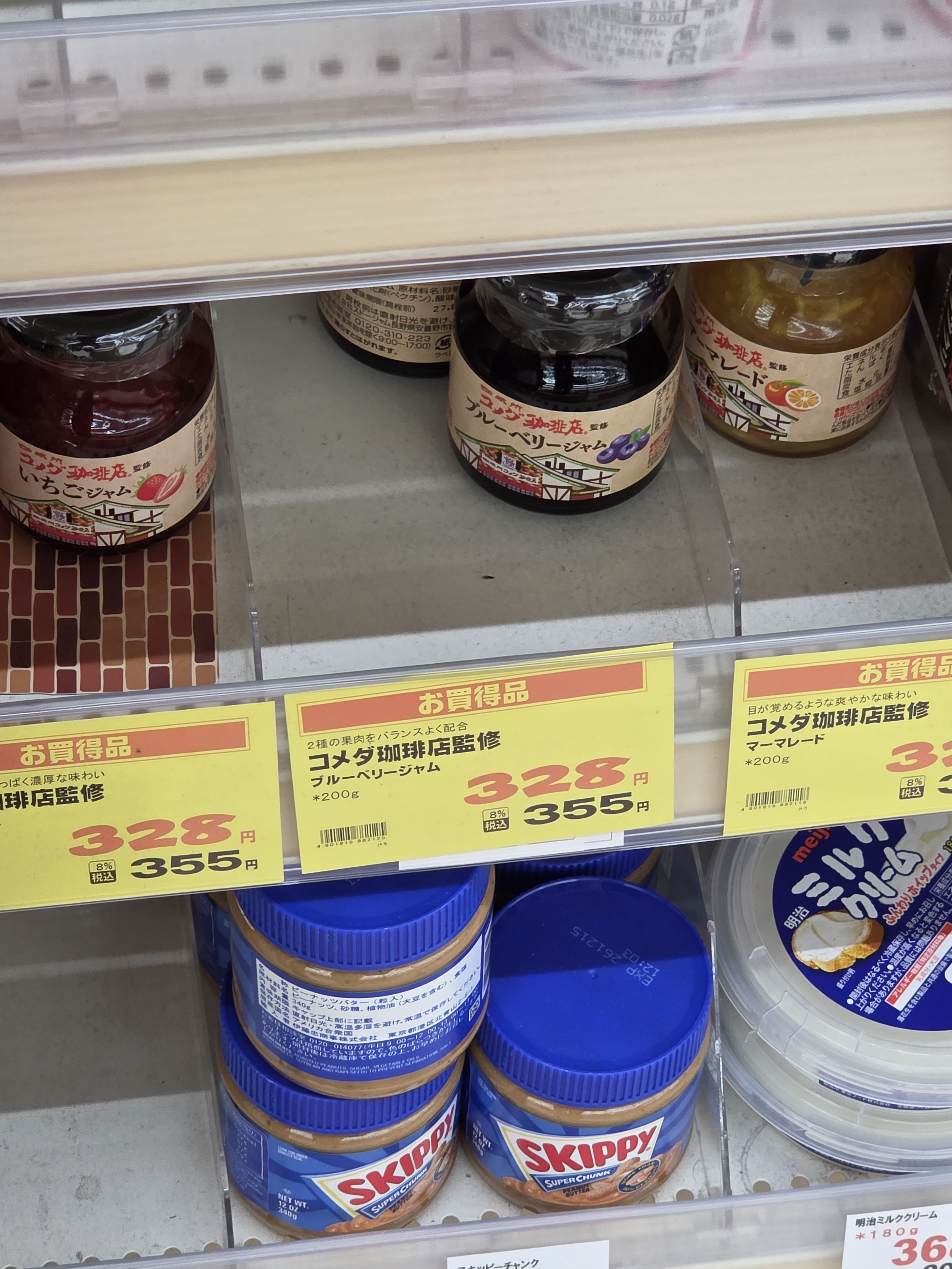 トップ > コメダ写真館 > 今日の1枚、安い。 ふみくんa 2026/04/08 14:00 今日の1枚、安い。 コメダ珈琲店監修のジャム3種類 いちご、ブルーベリー、マーマレード 最近発売され投稿されてる方がみえました。確か349円だったかな。 私の方ではドラッグストア1店にだけ売ってますが328円(税別)でした。 いいね 共有する 共有する X facebook LINE リンクをコピー コメントする 1 件の返信 (新着順) ミュートしたユーザーの投稿です。 投稿を表示 HIRO 2026/04/08 16:18 ふみくんa 🍓🍇🍑美味しそうだぎゃー🤤✨ いいね 返信する ミュートしたユーザーの投稿です。 投稿を表示 ふみくんa 2026/04/08 16:58 HIRO 3種類とも、もう食べ終わったがね。 でらうみゃーでかんわ 美味かったうしまけただがね。 いいね 返信する