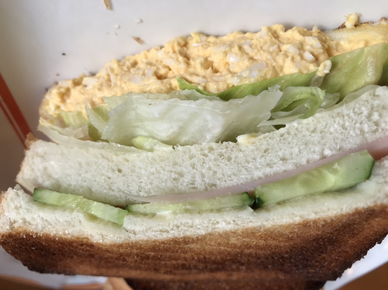サクッとパンにシャキシャキレタスとキュウリ、そして今回も たまごペーストの重量‼️😆🎵